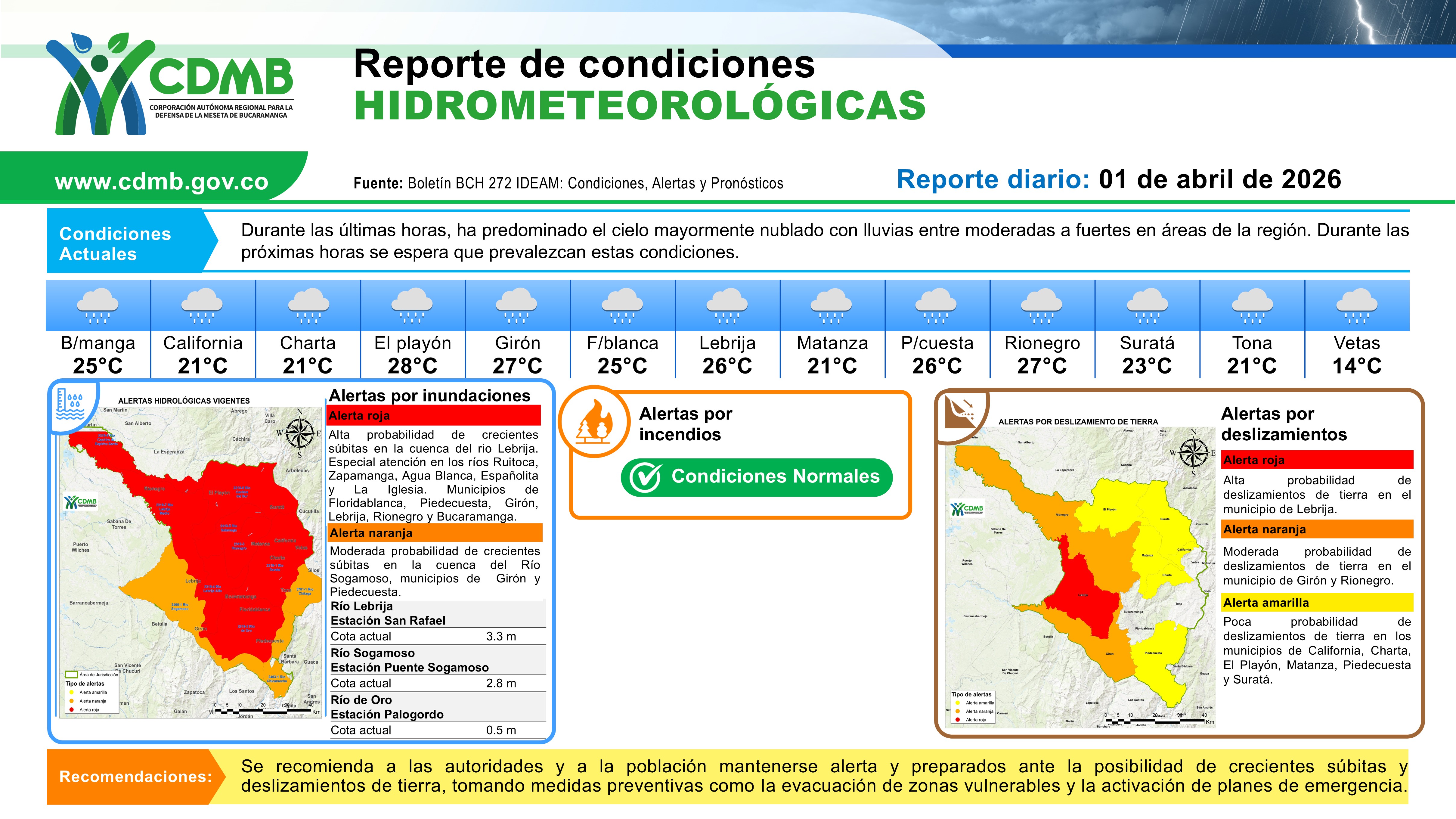 Reporte Alertas Hidrometereologicas 01 de abril 2026