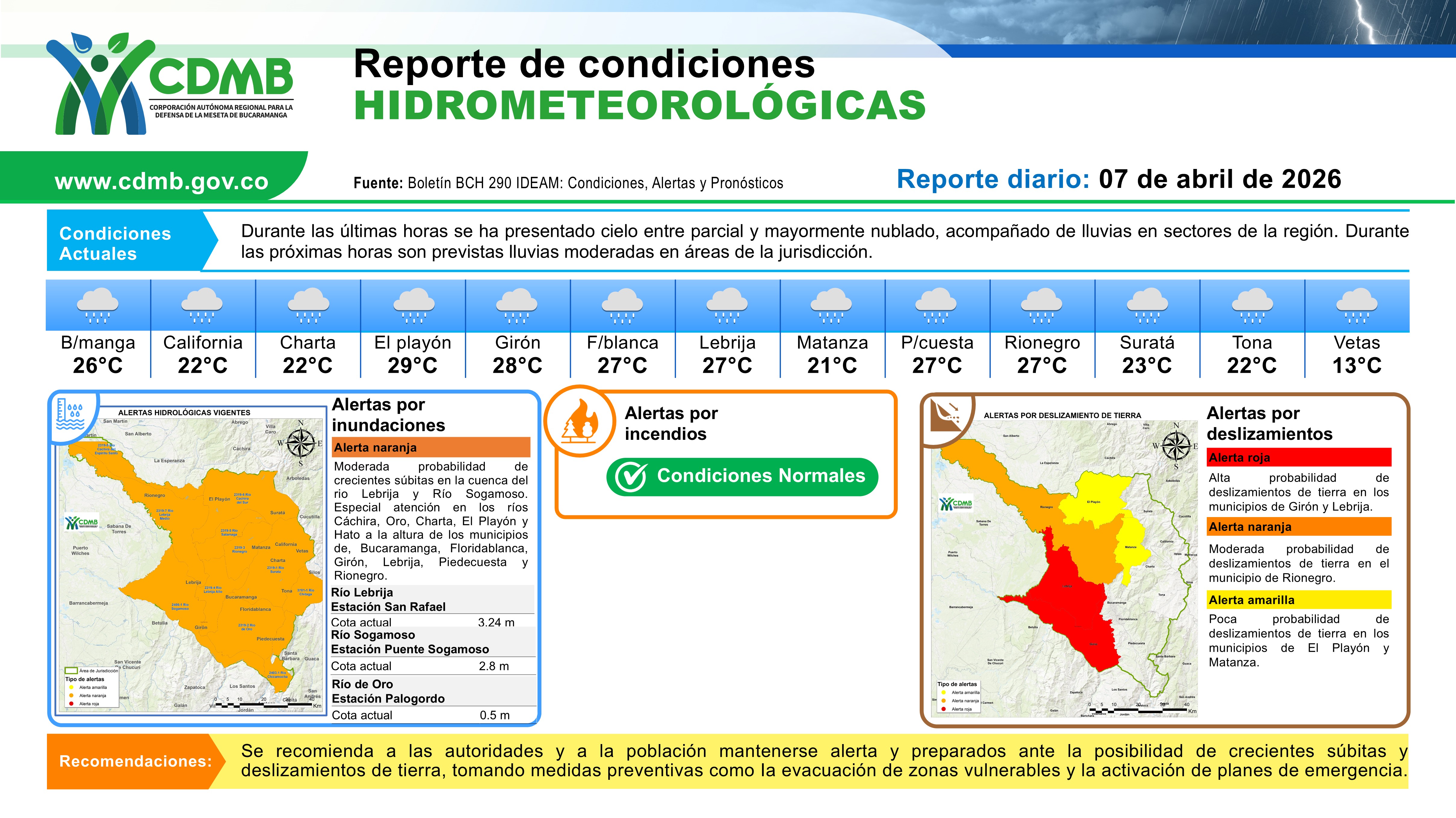 Reporte Alertas Hidrometereologicas 07 de abril 2026