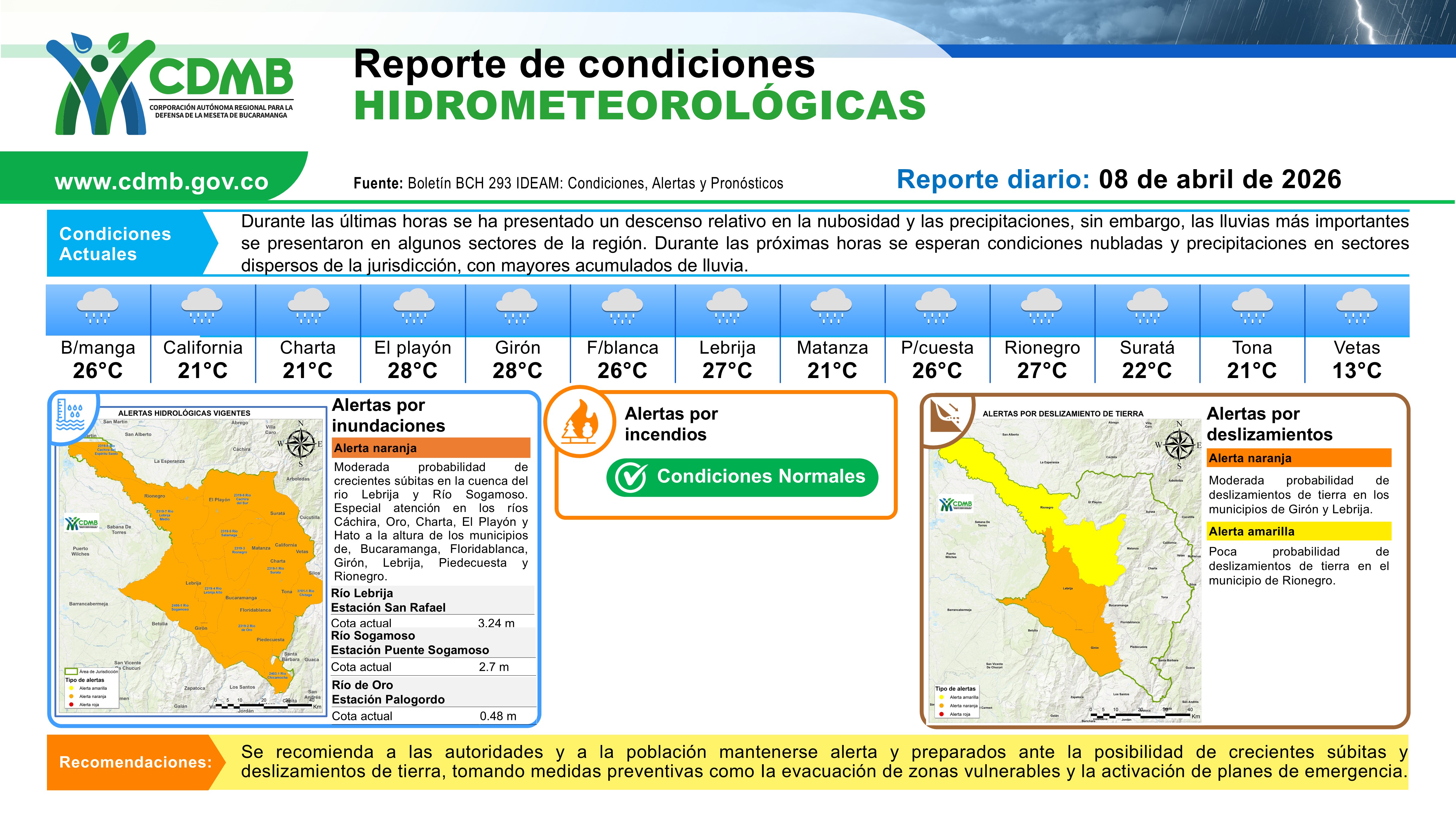 Reporte Alertas Hidrometereologicas 08 de abril 2026
