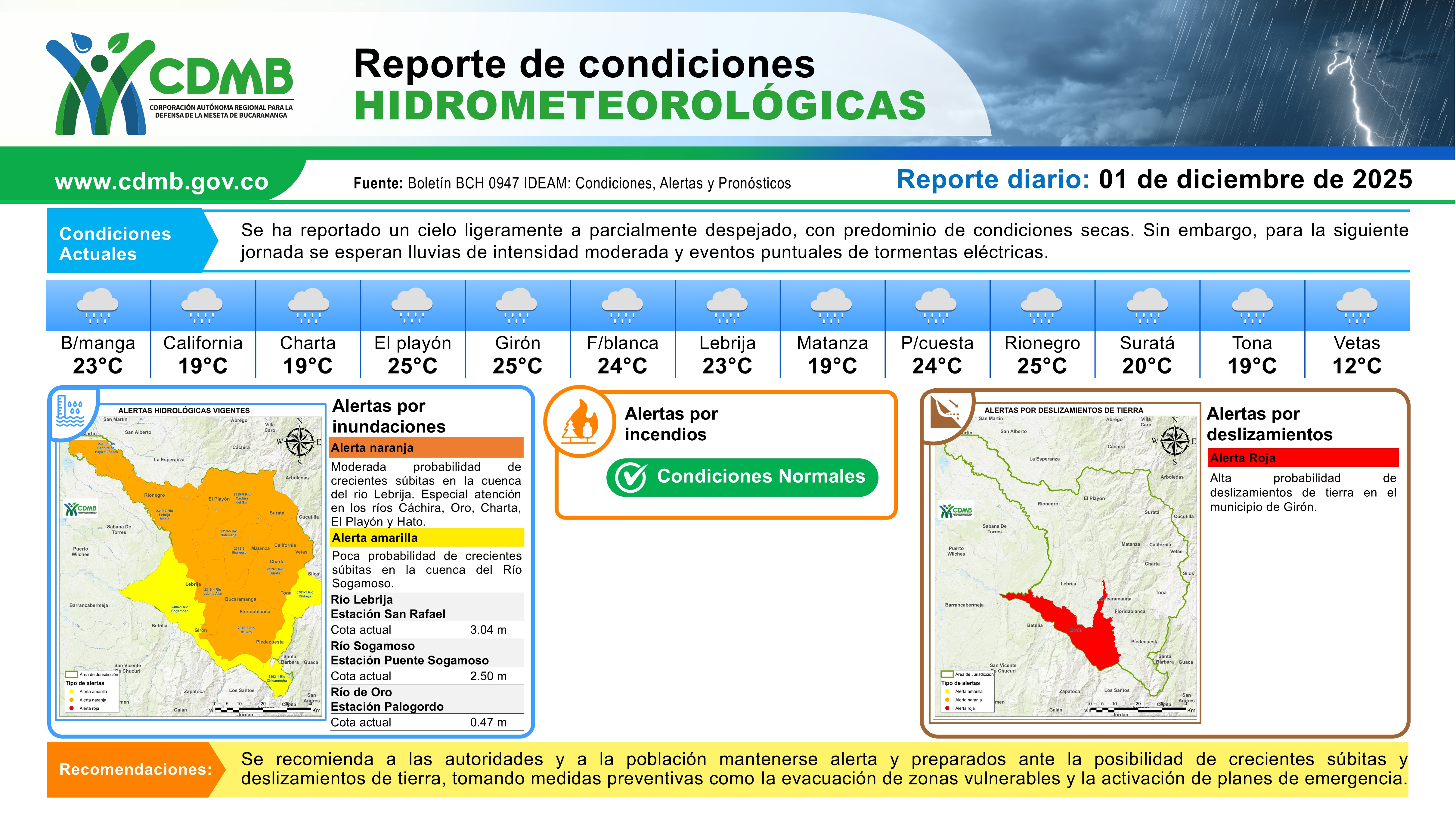 Reporte Alertas Hidrometeorológicas 01 de diciembre