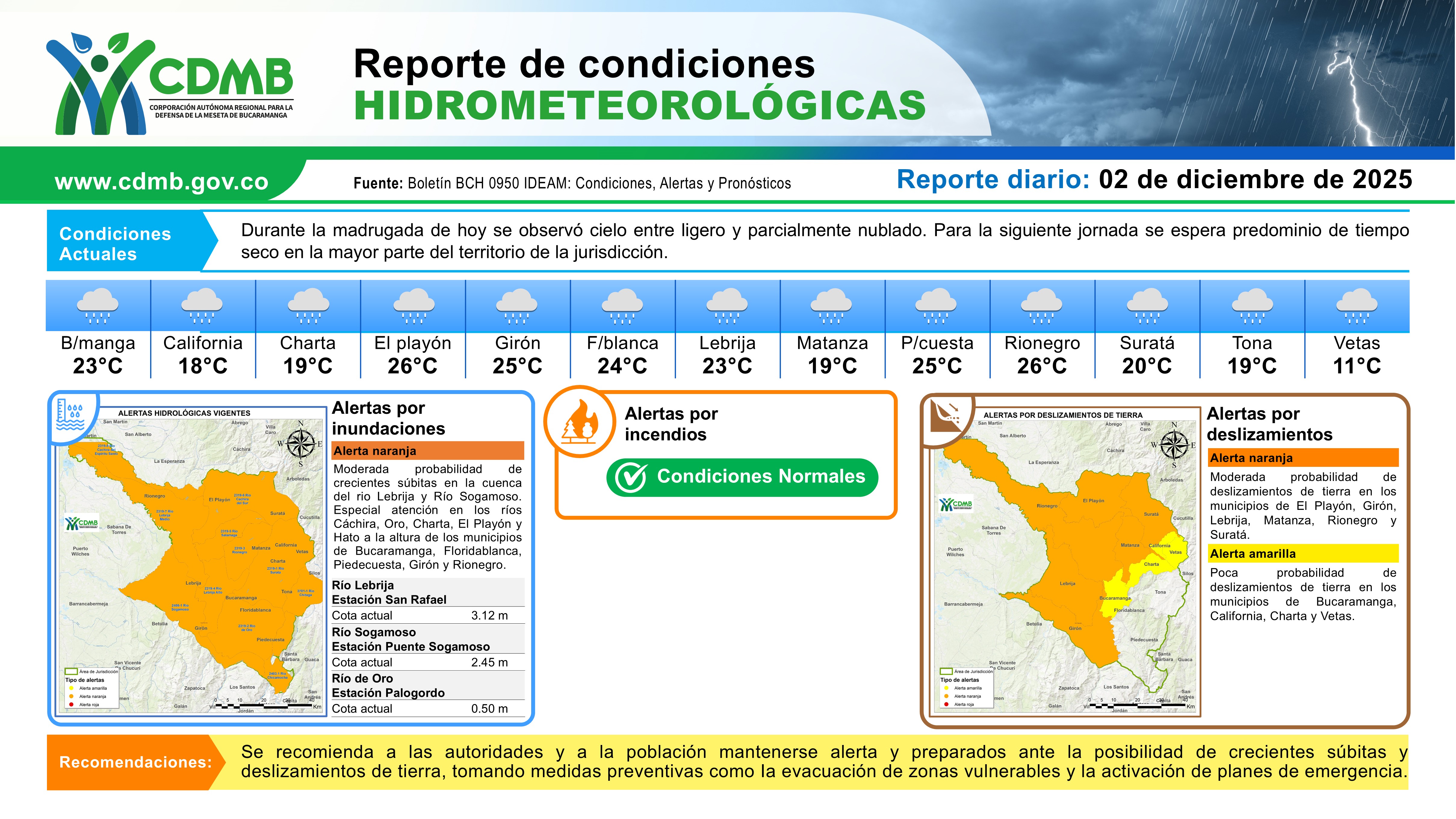 Reporte Alertas Hidrometeorológicas 02 de diciembre