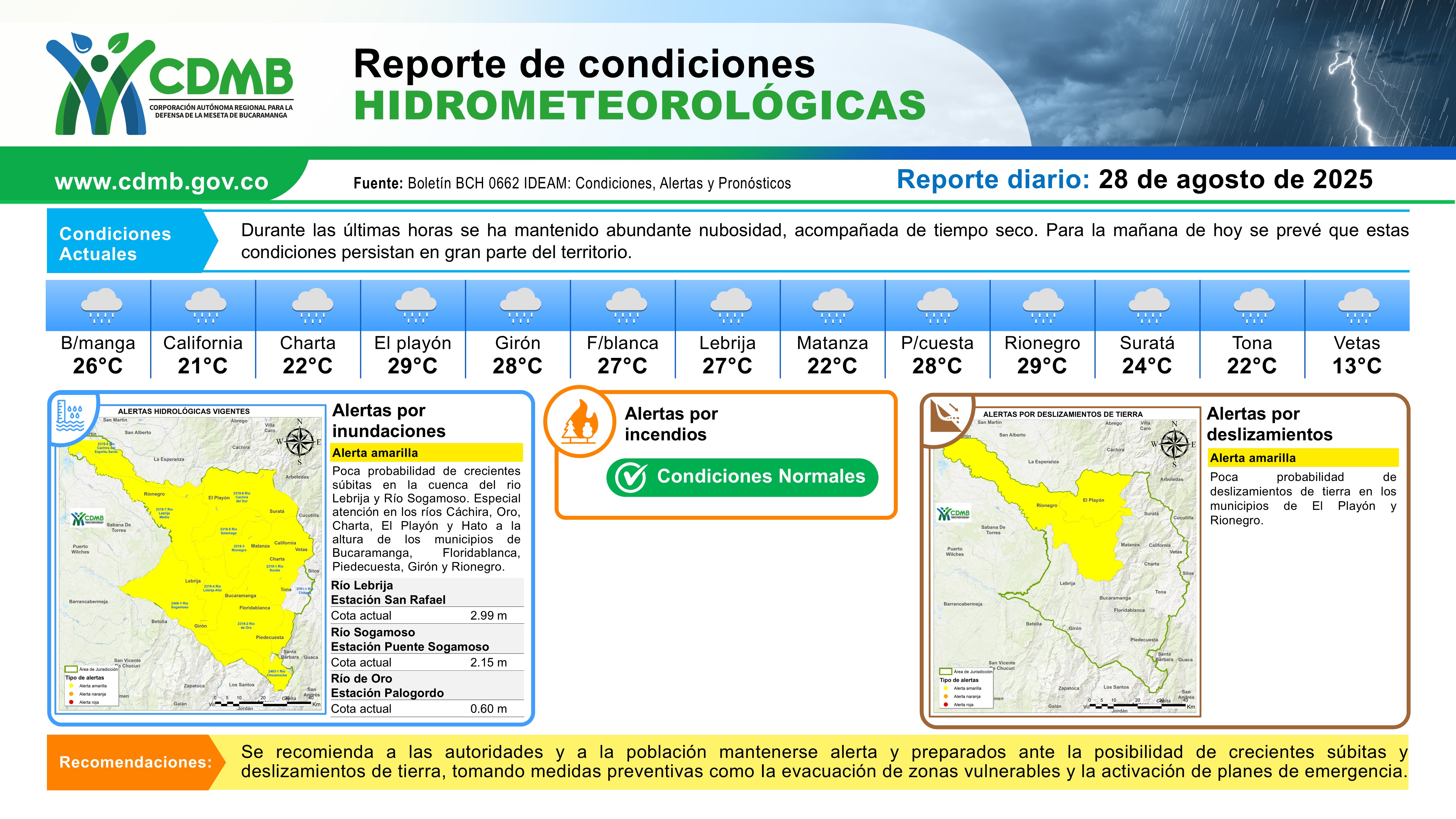 Reporte Alertas Hidrometeorológicas 28 de agosto