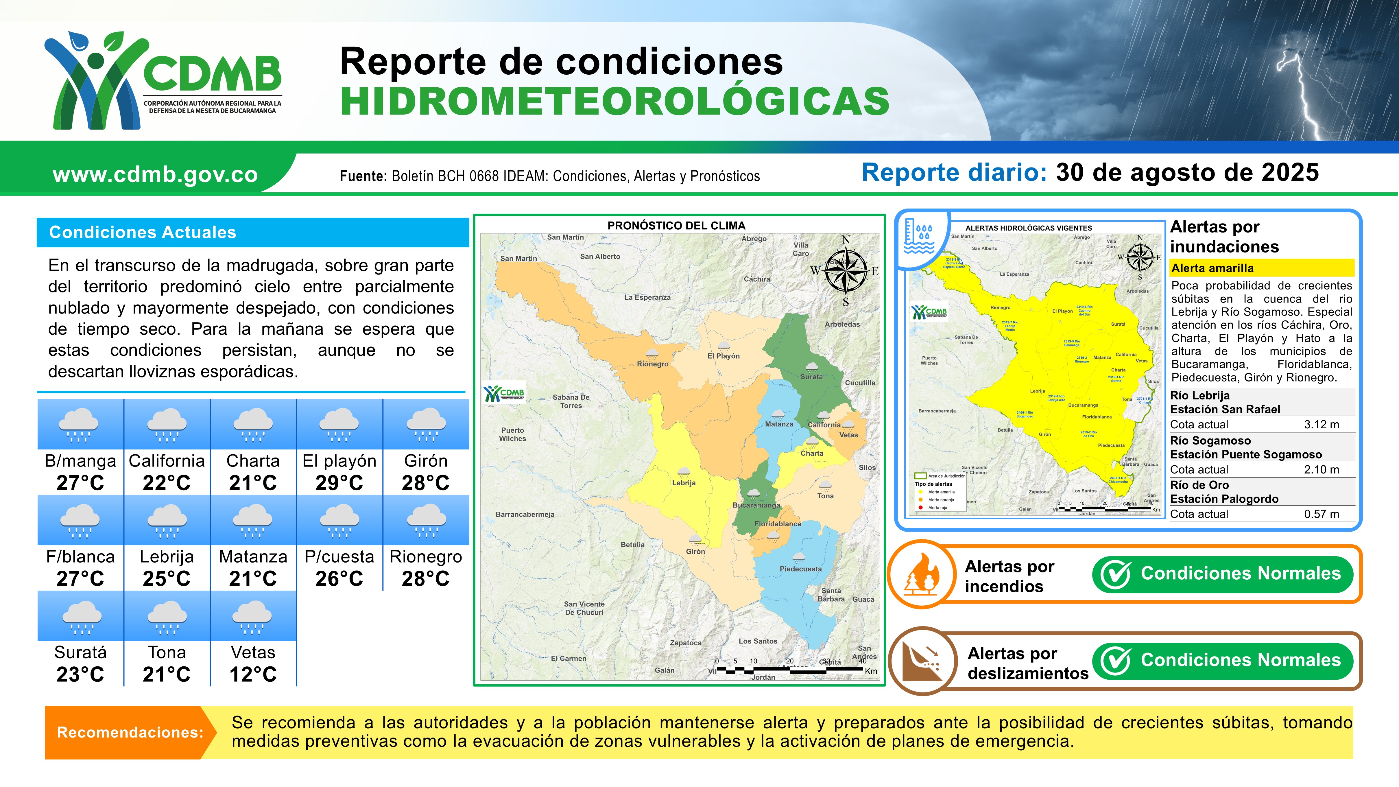 Reporte Alertas Hidrometeorológicas 30 de agosto