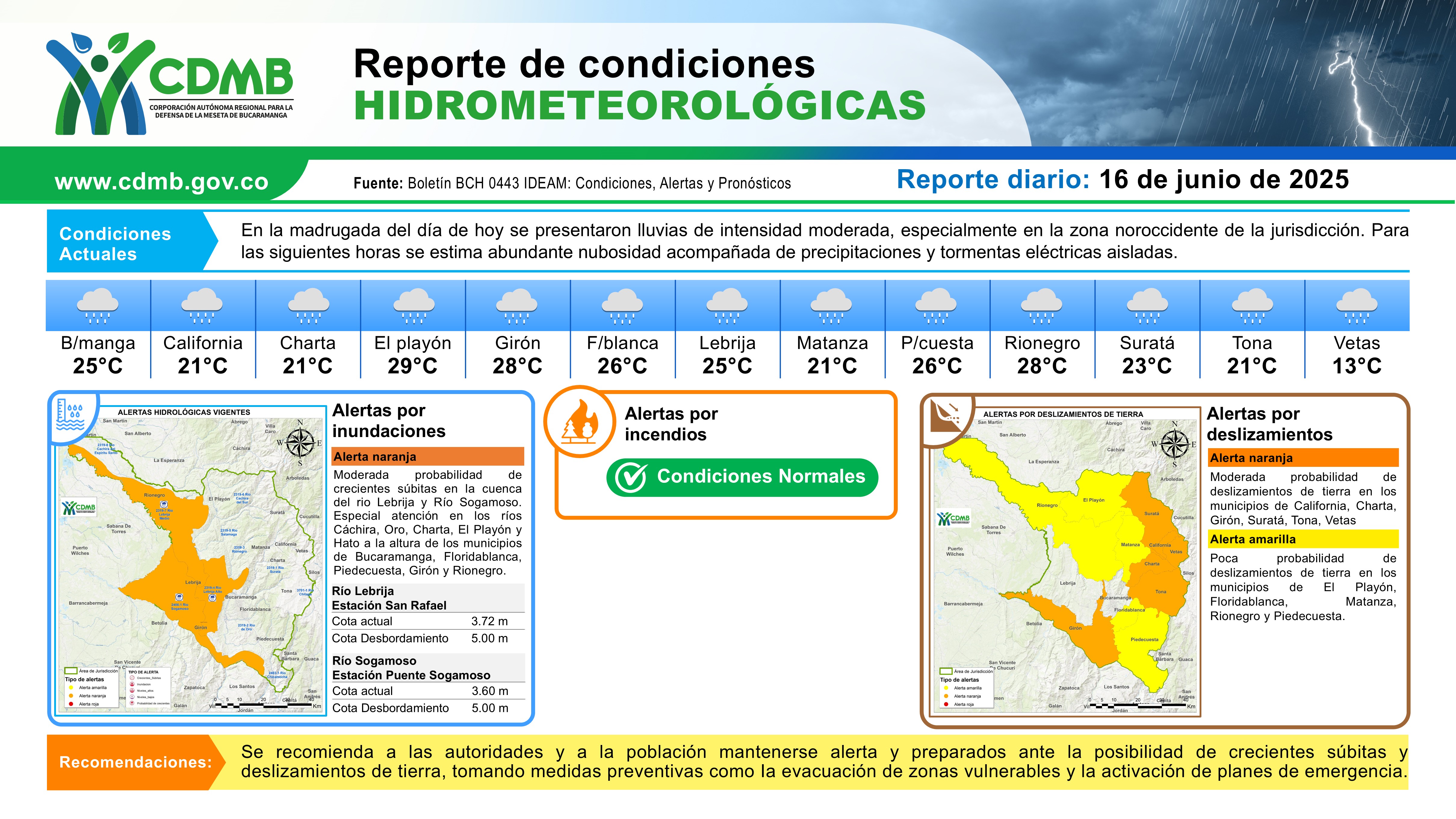 Reporte Alertas Hidrometeorológicas 16 de junio