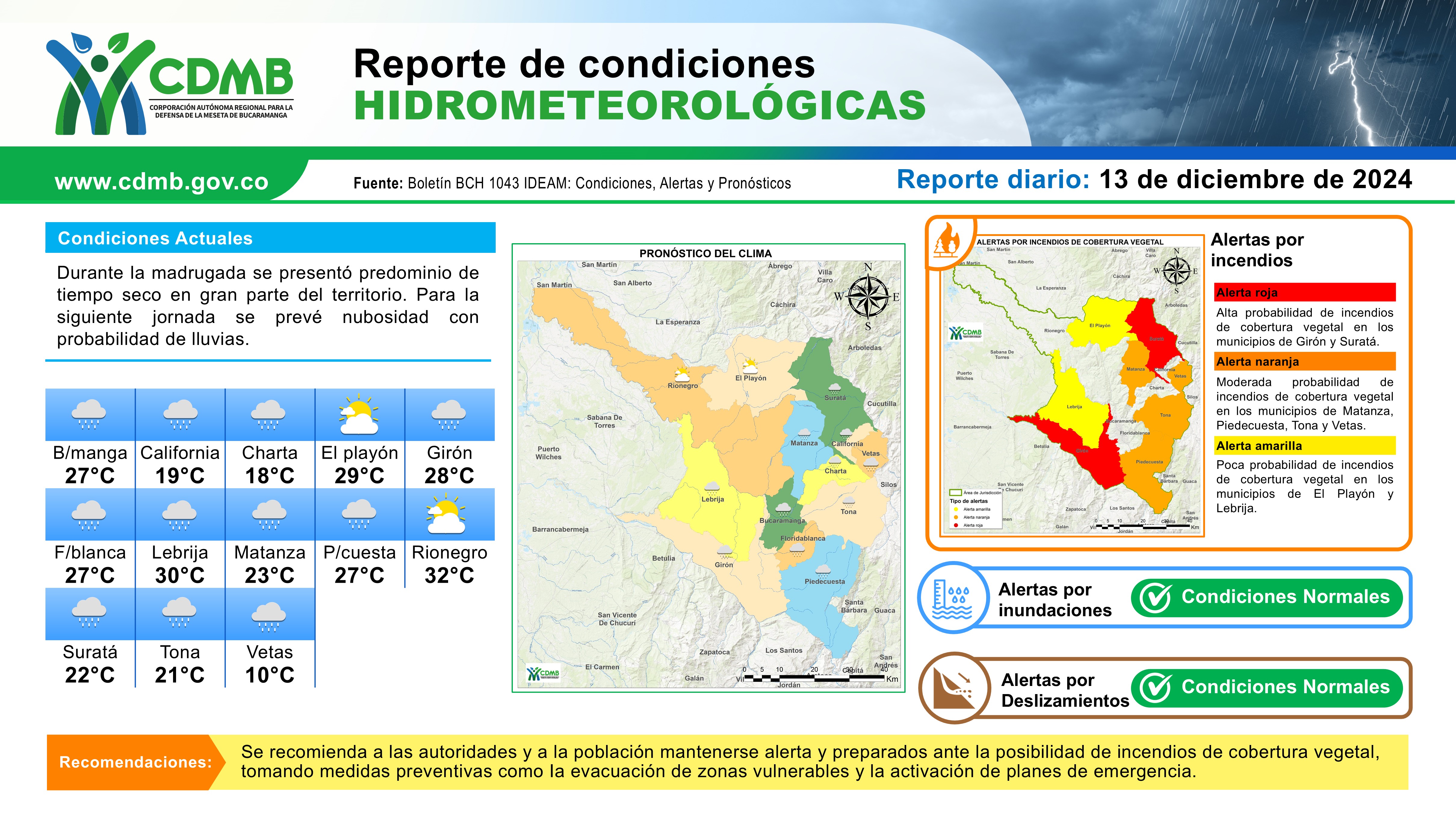 Reporte Alertas Hidrometeorológicas 13 de diciembre