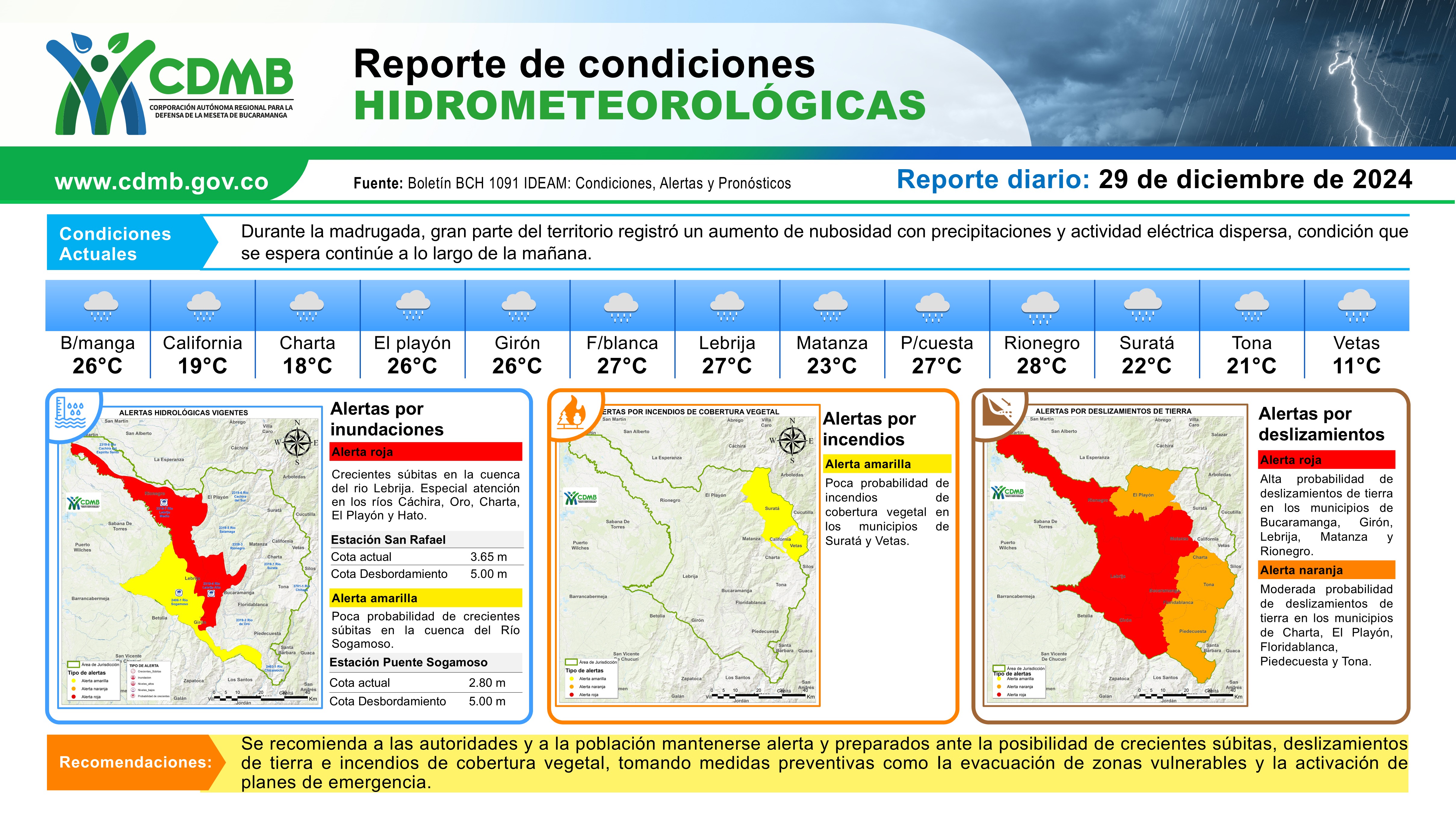 Reporte Alertas Hidrometeorológicas 29 de diciembre