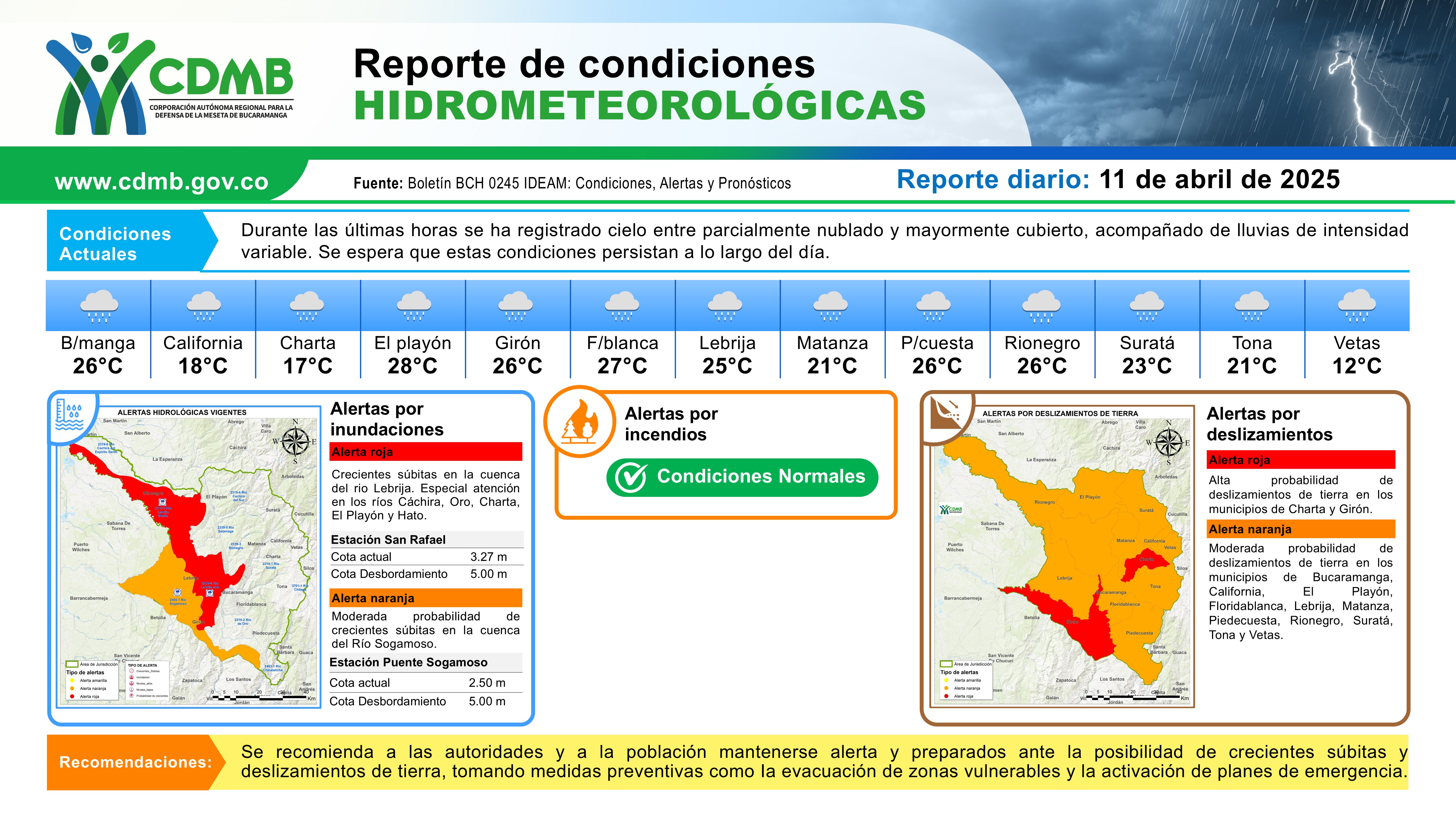 Reporte Alertas Hidrometeorológicas 25 de abril