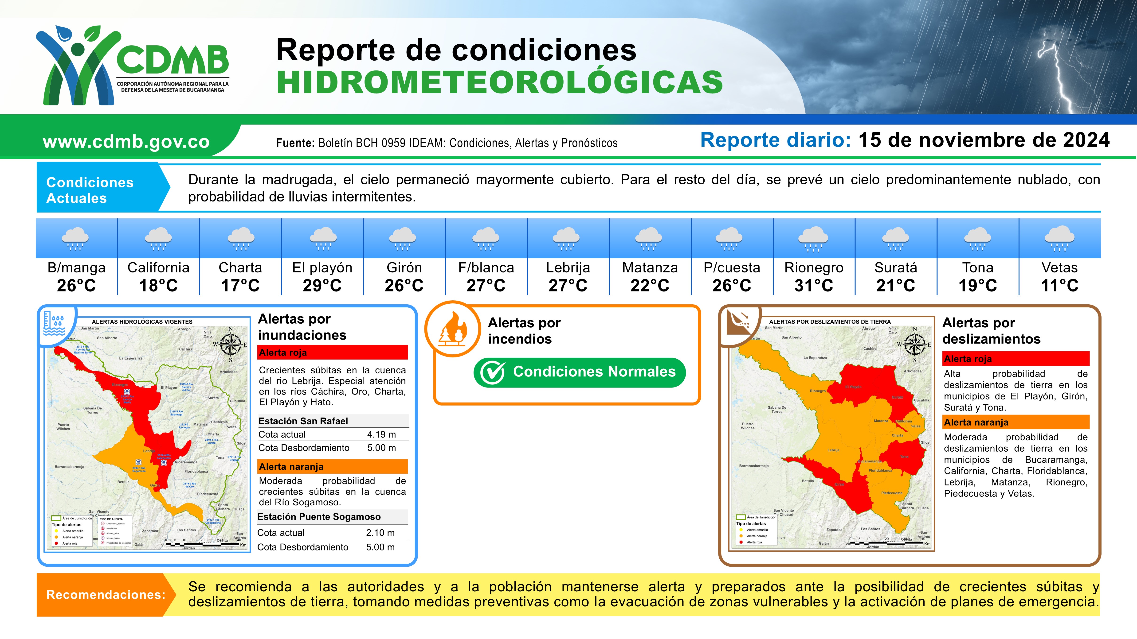 Reporte Alertas Hidrometeorológicas 15 de noviembre