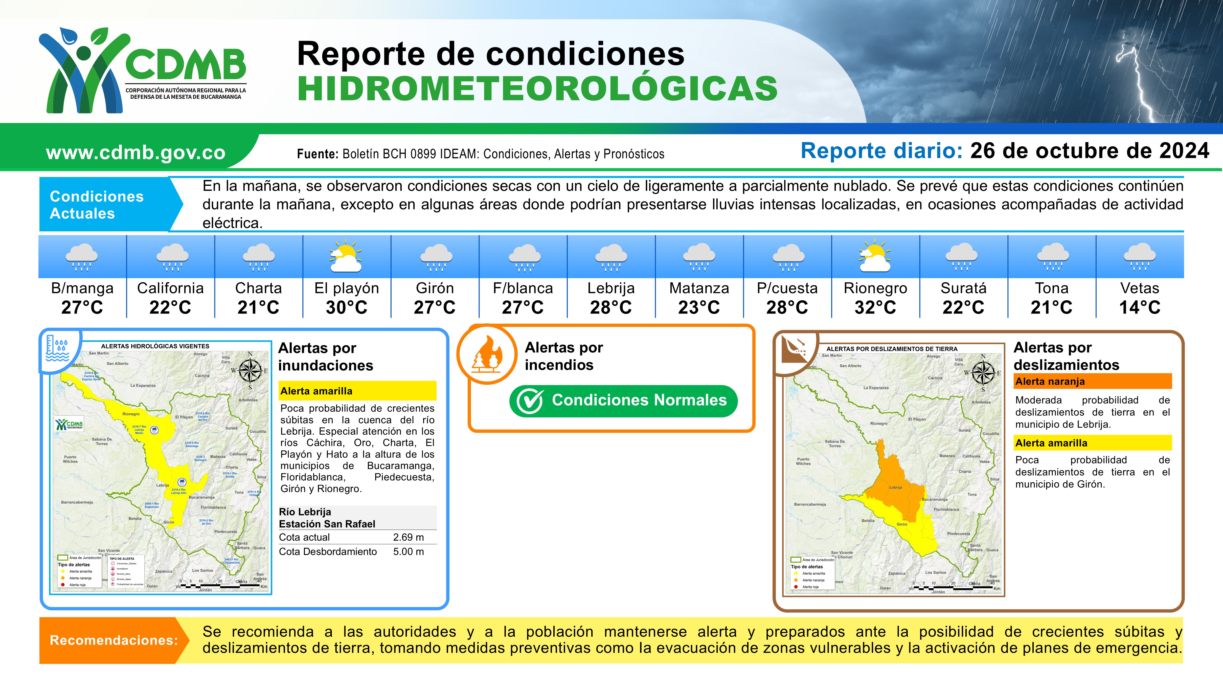 Reporte Alertas Hidrometeorológicas 26 de octubre