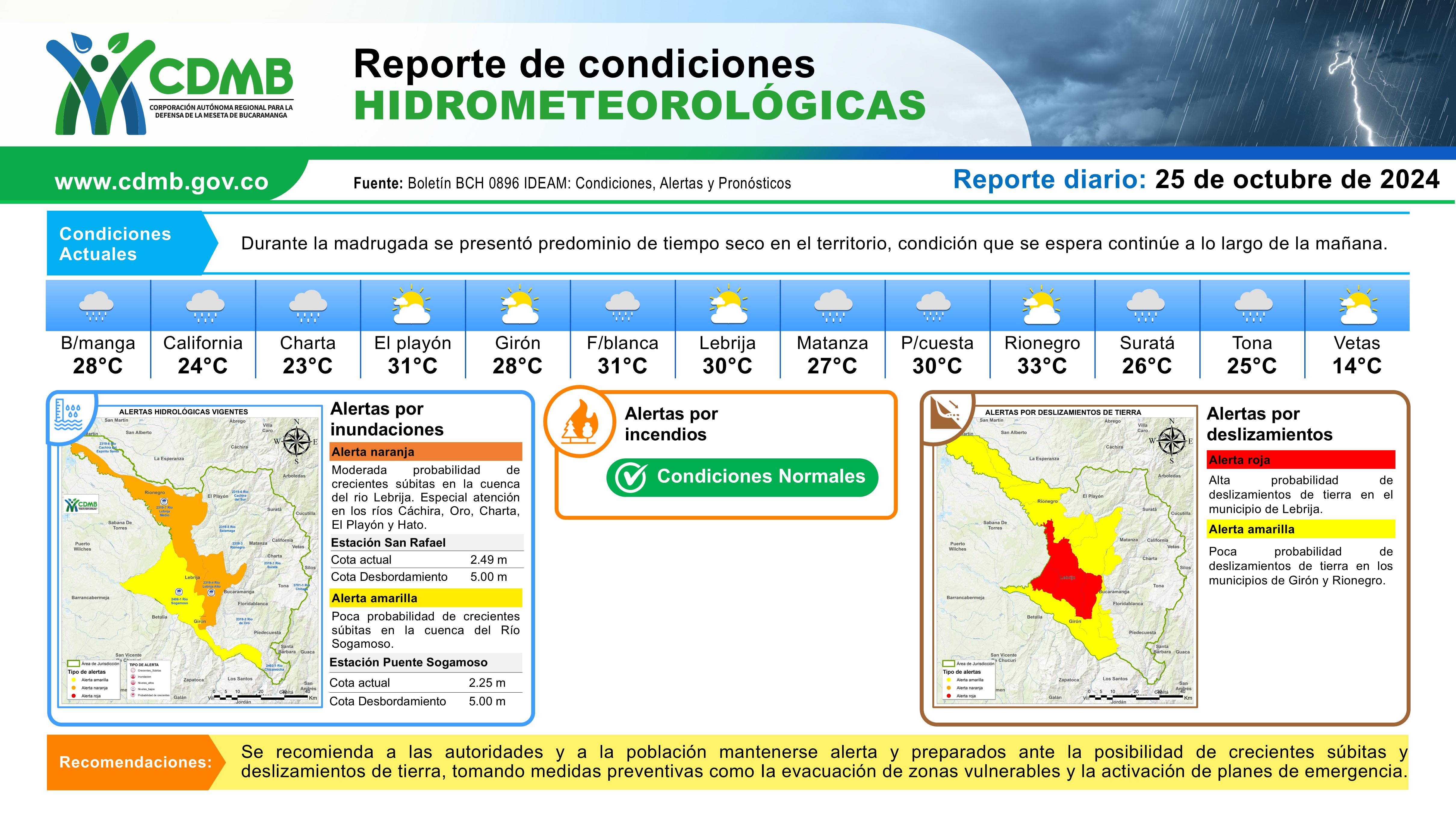 Reporte Alertas Hidrometeorológicas 25 de octubre