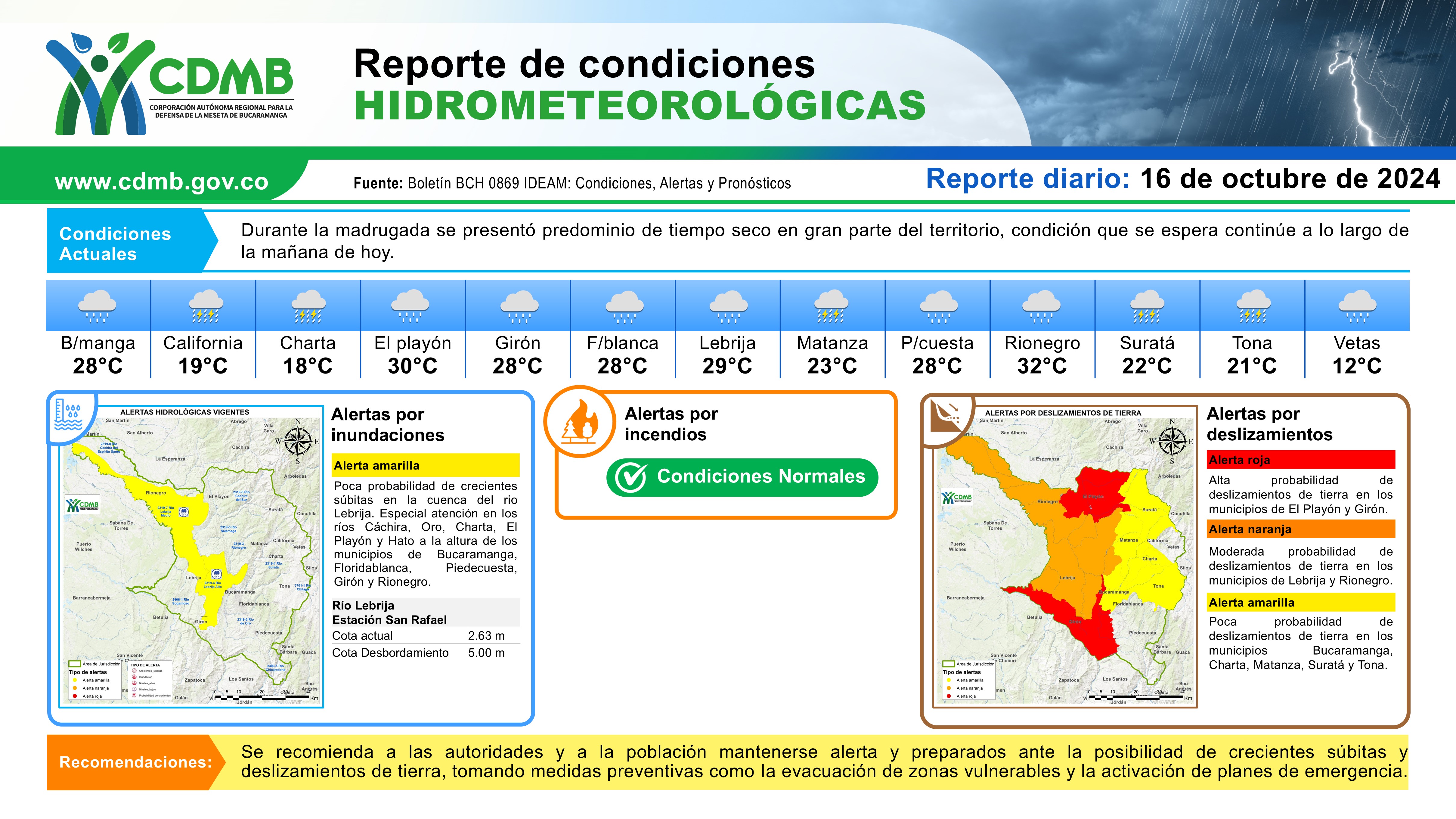 Reporte Alertas Hidrometeorológicas 16 de octubre