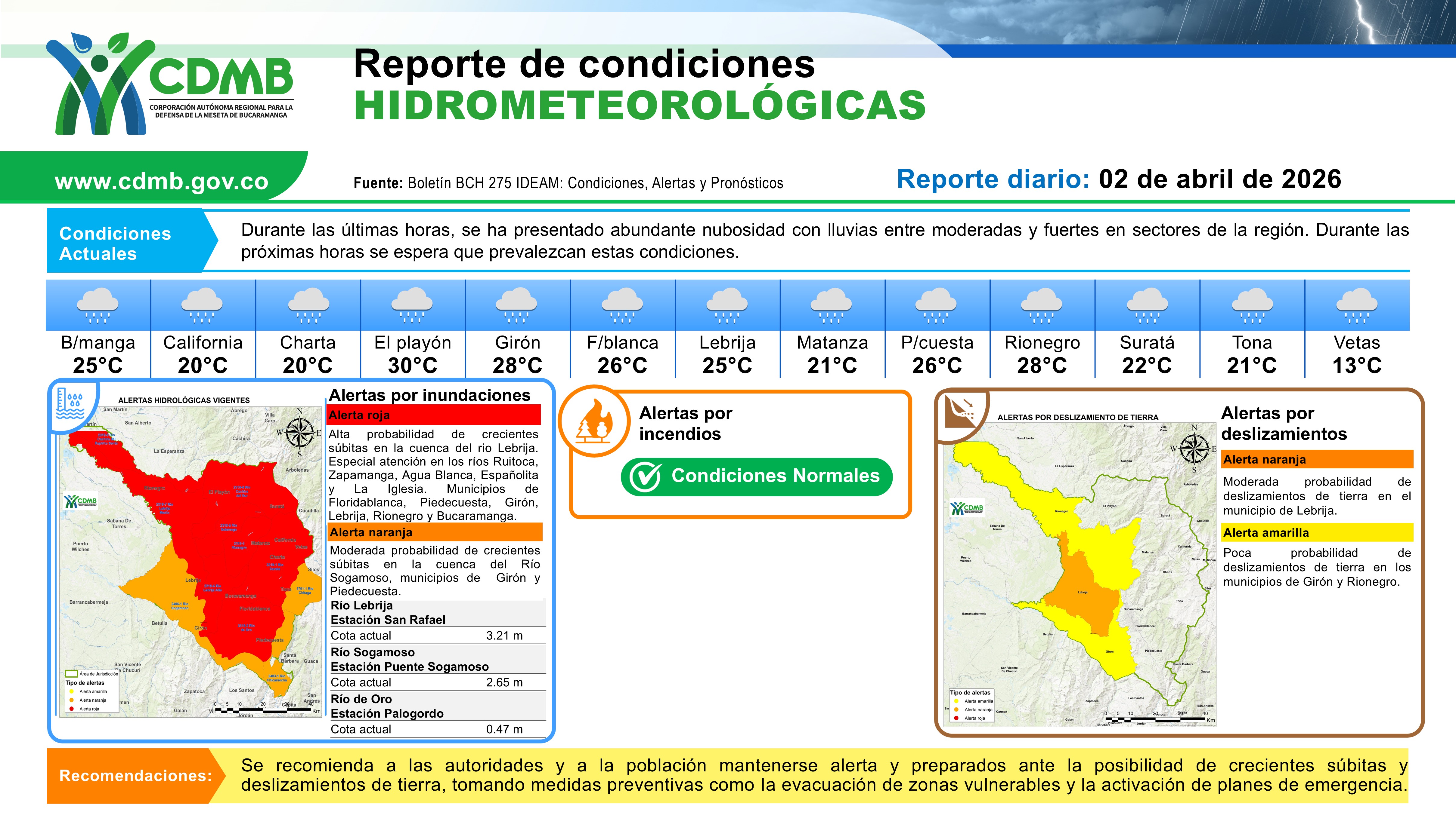 Reporte Alertas Hidrometereologicas 02 de abril 2026