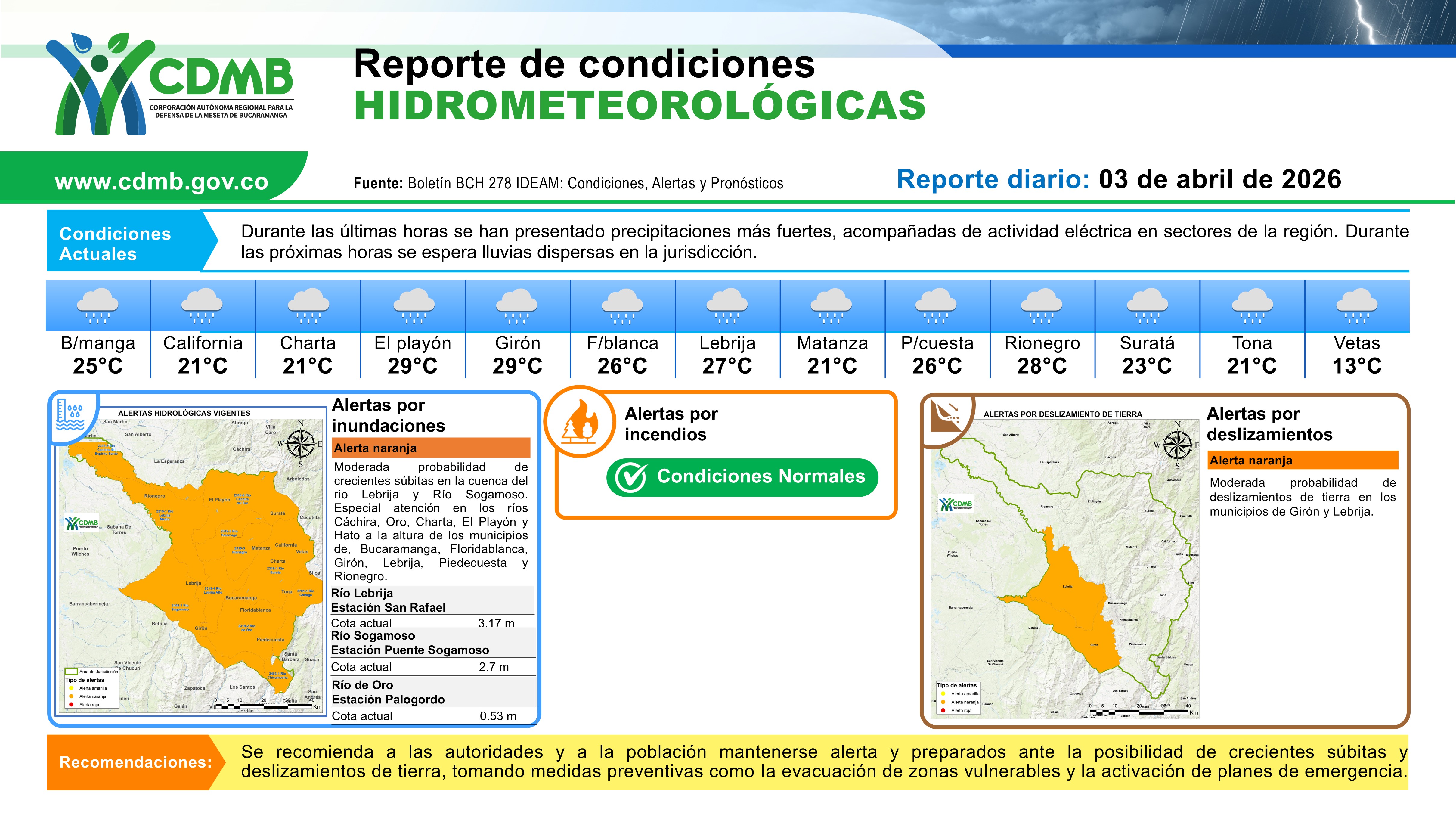 Reporte Alertas Hidrometereologicas 03 de abril 2026