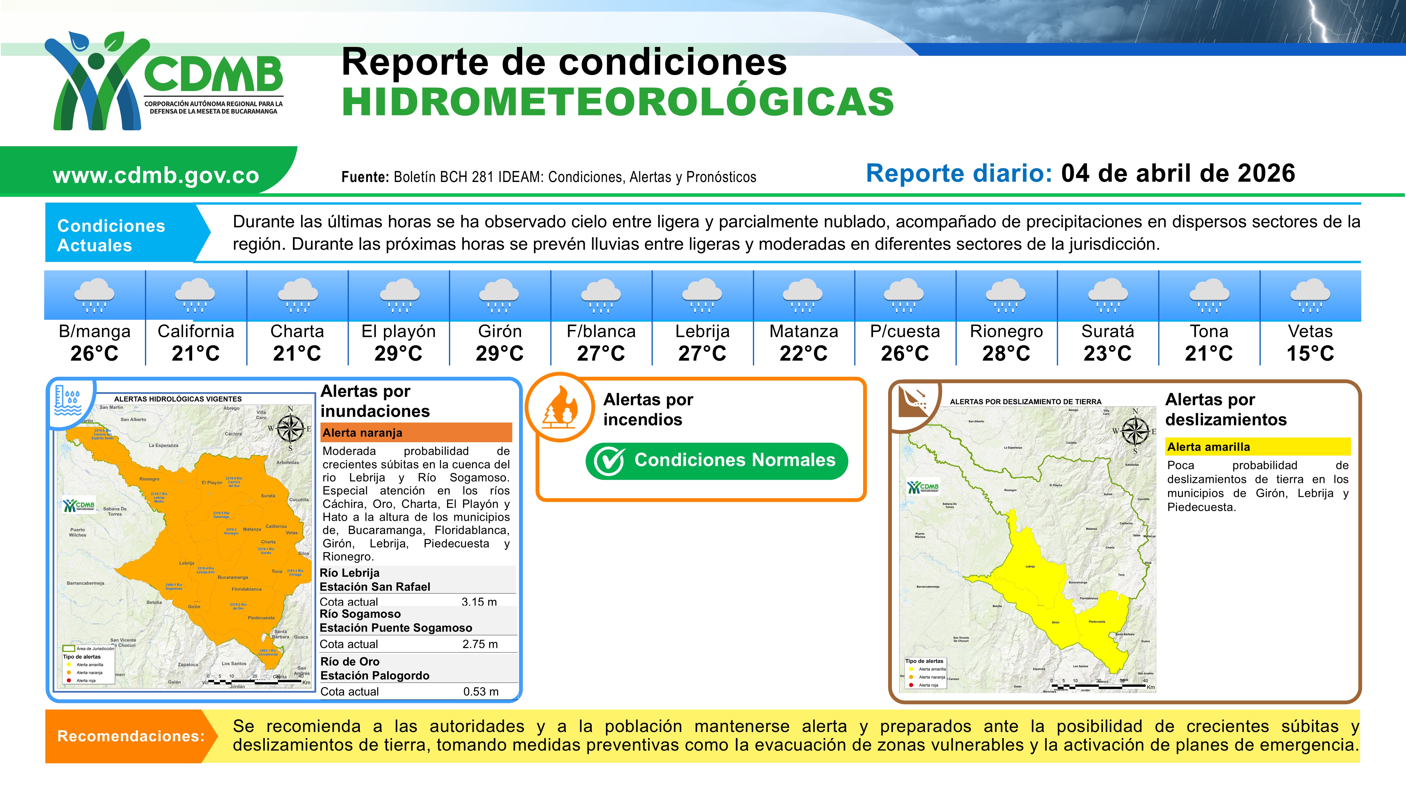 Reporte Alertas Hidrometereologicas 04 de abril 2026