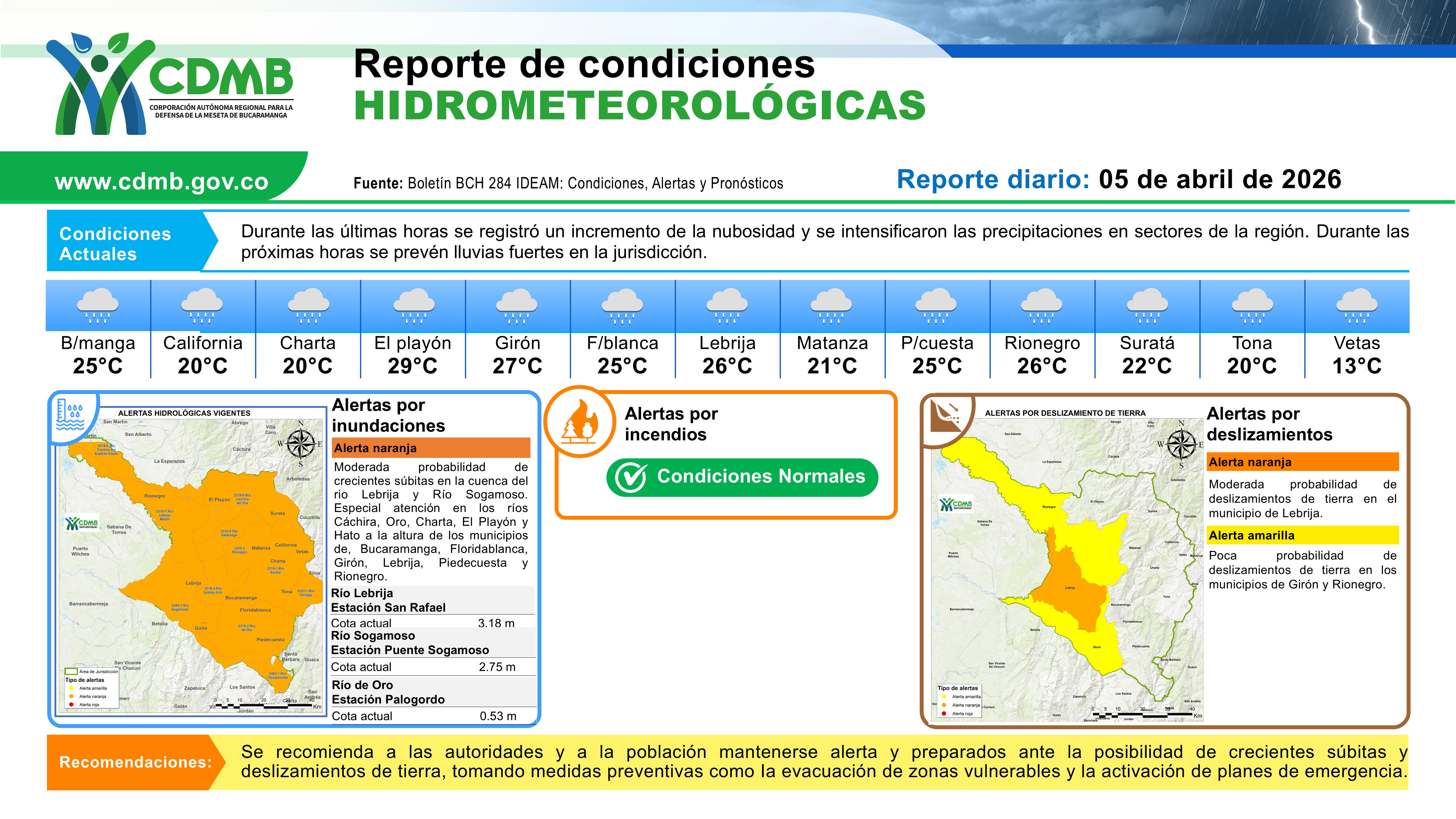 Reporte Alertas Hidrometereologicas 05 de abril 2026