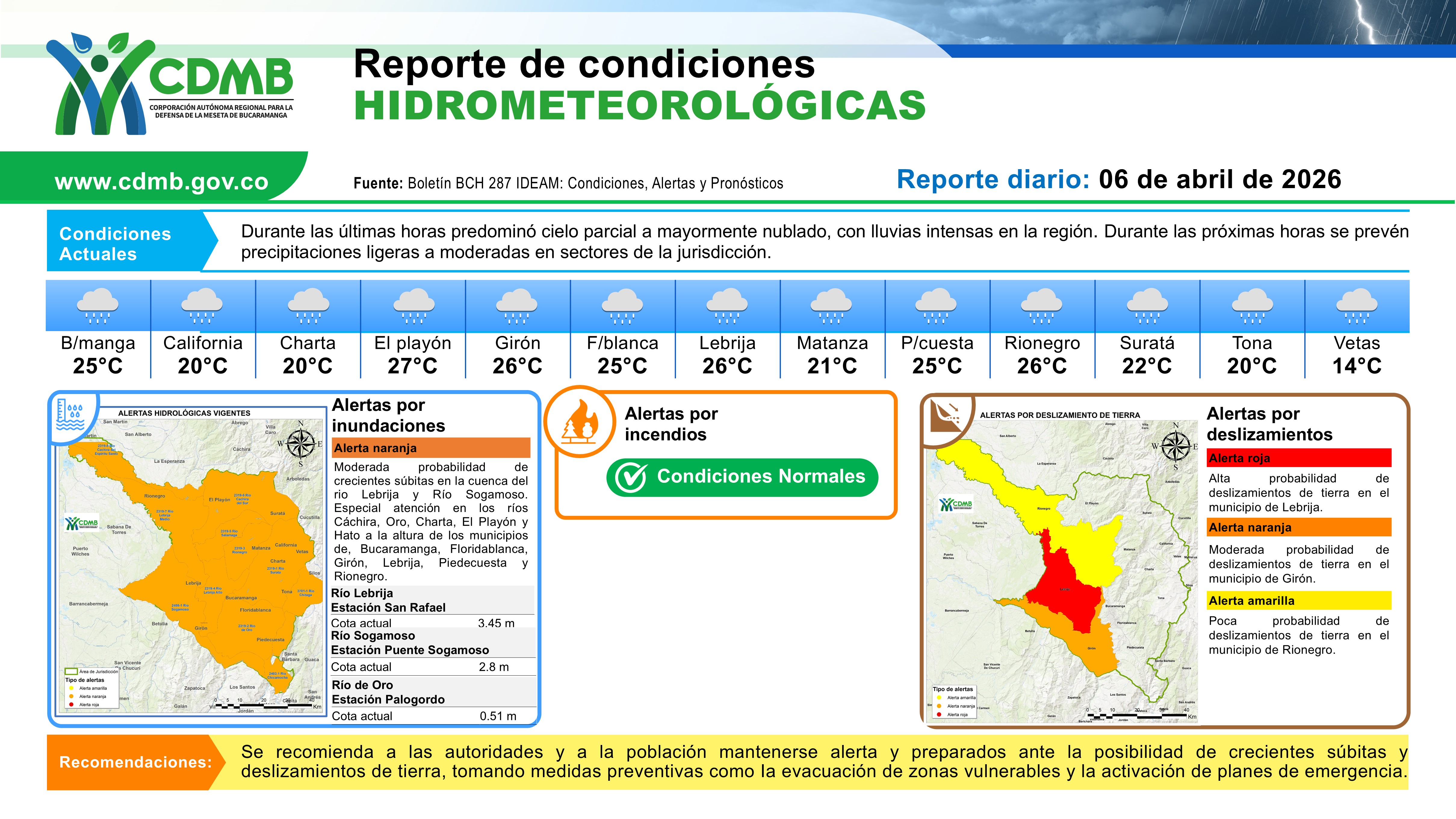 Reporte Alertas Hidrometereologicas 06 de abril 2026