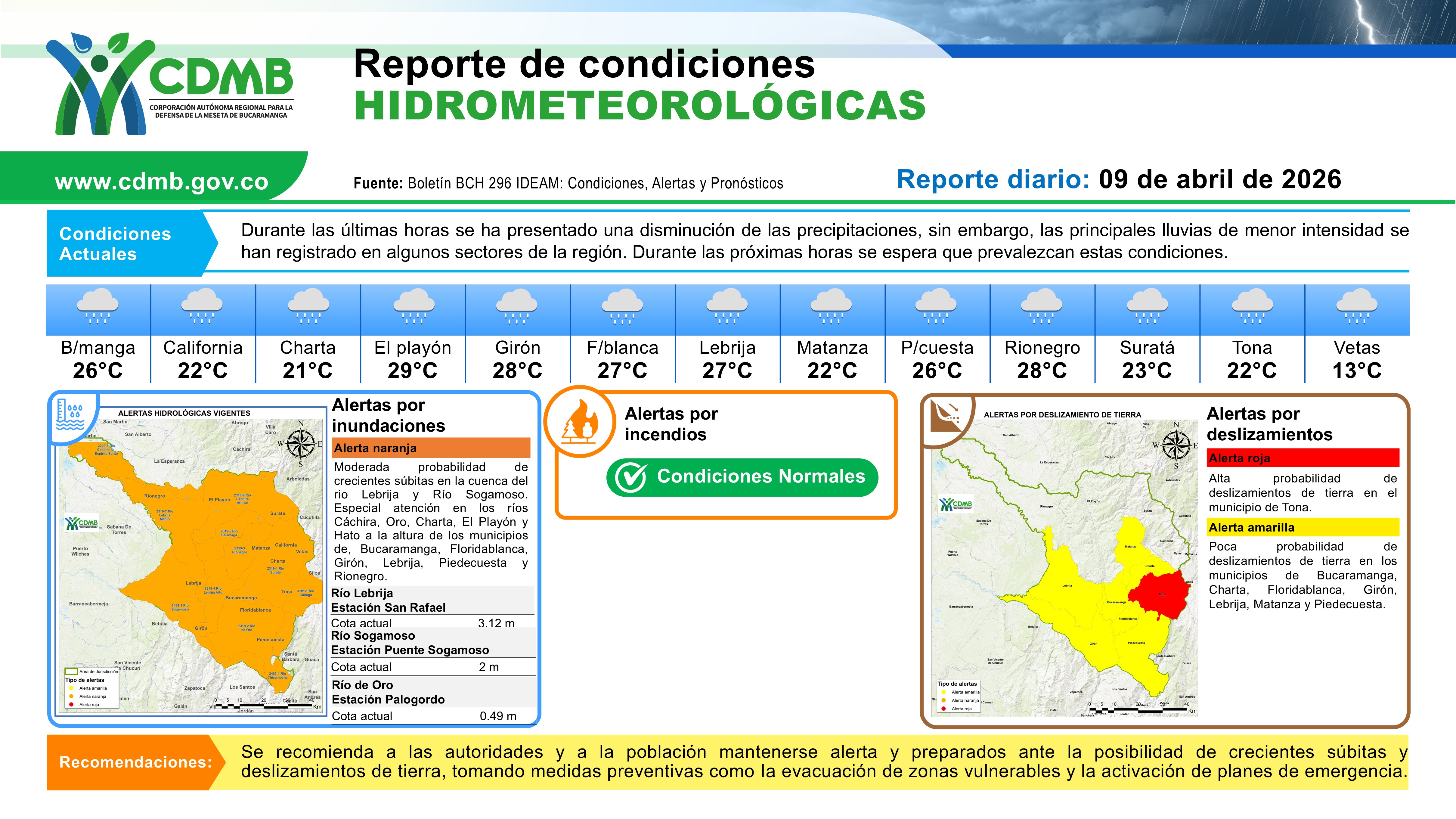 Reporte Alertas Hidrometereologicas 09 de abril 2026