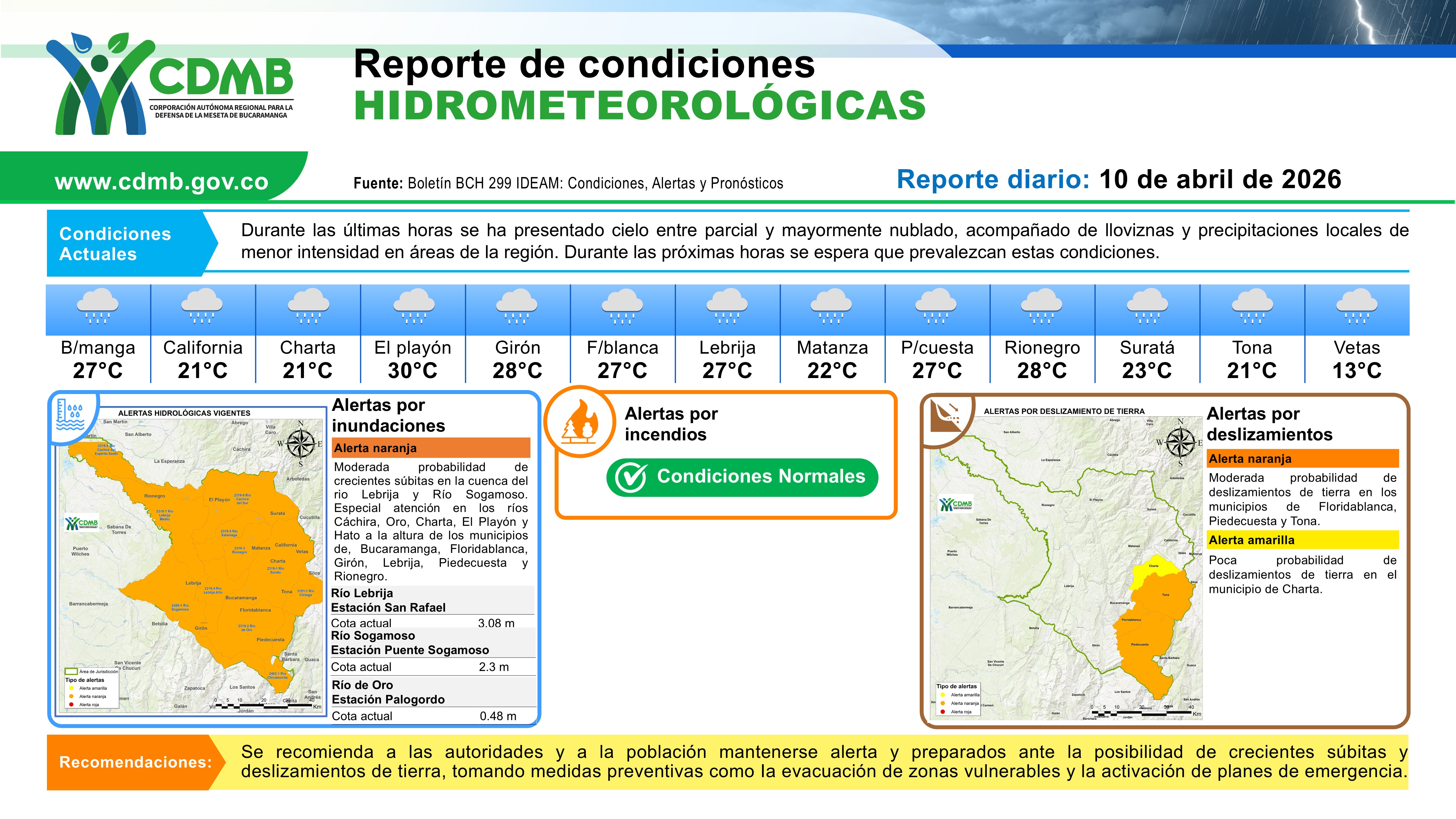Reporte Alertas Hidrometereologicas 10 de abril 2026