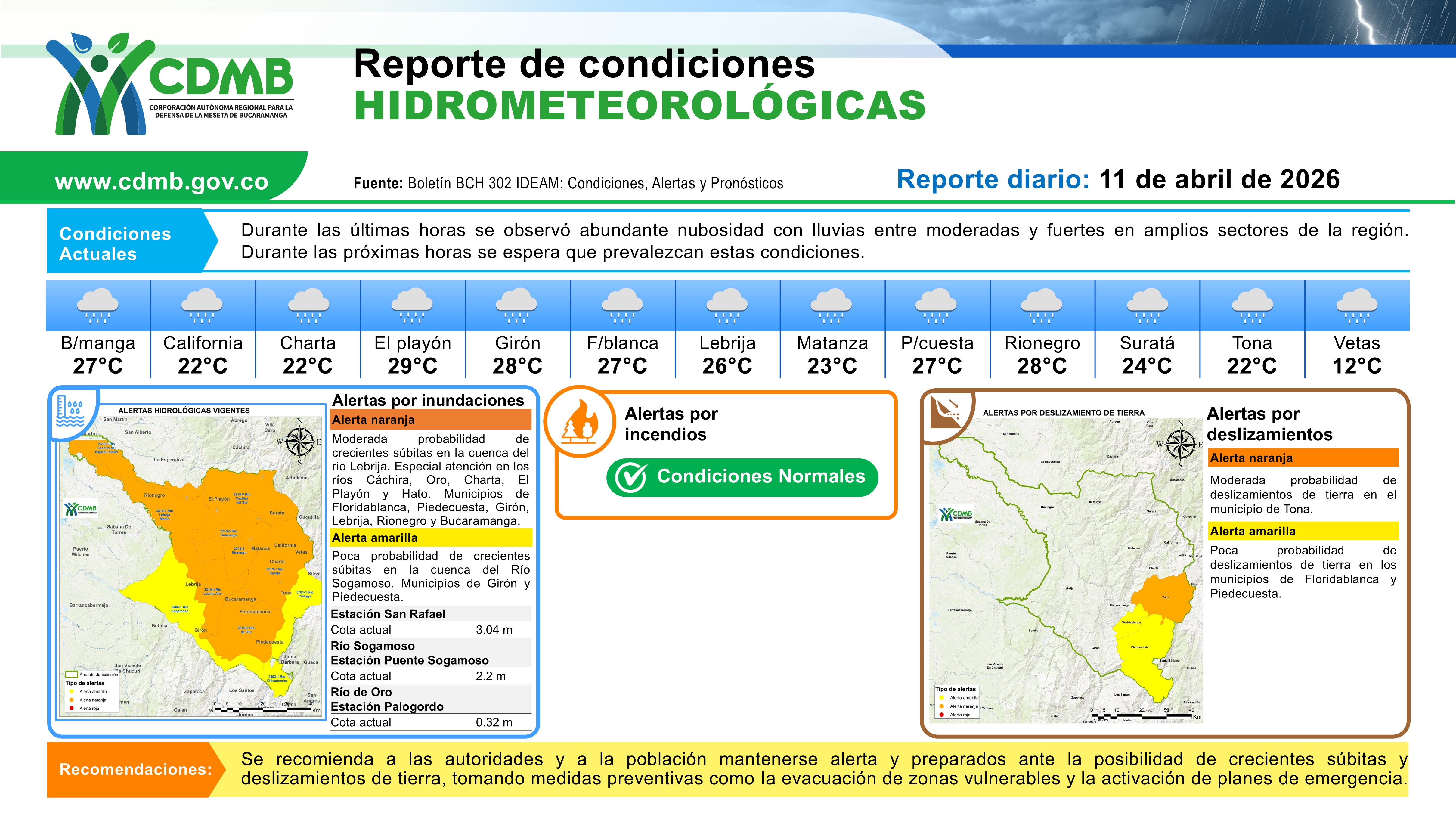 Reporte Alertas Hidrometereologicas 11 de abril 2026
