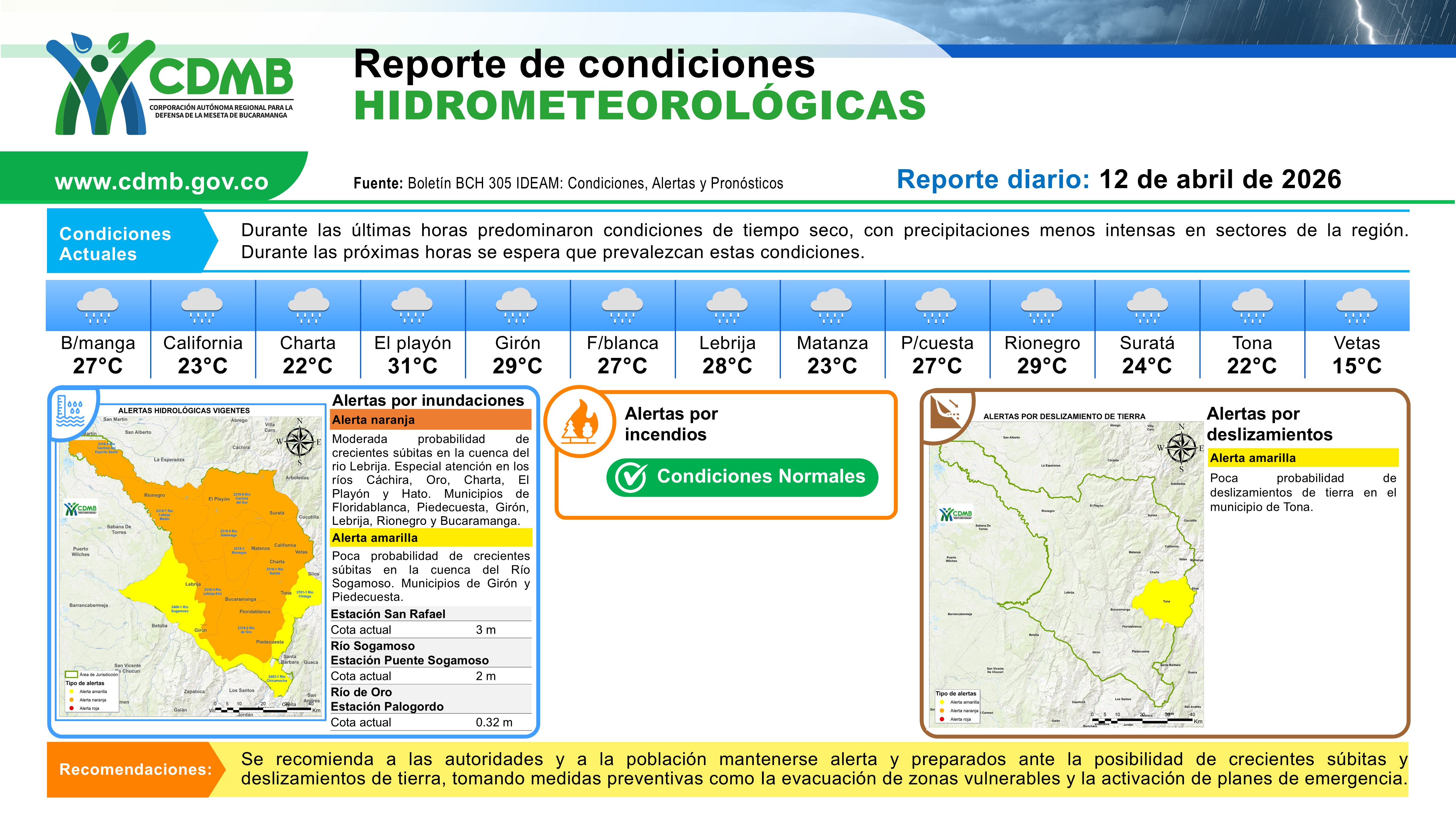 Reporte Alertas Hidrometereologicas 12 de abril 2026