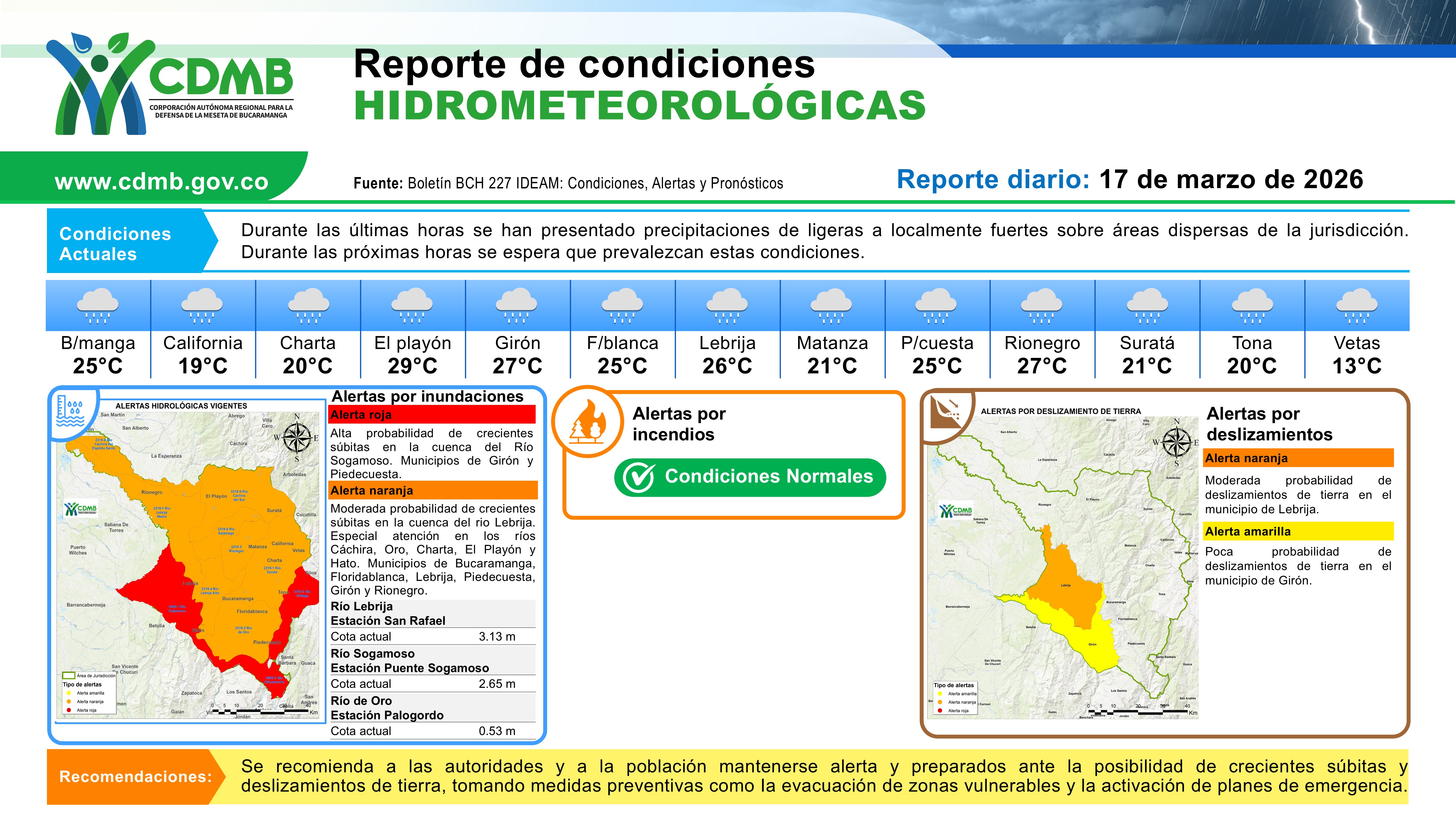 Reporte Alertas Hidrometereologicas 17 de marzo 2026