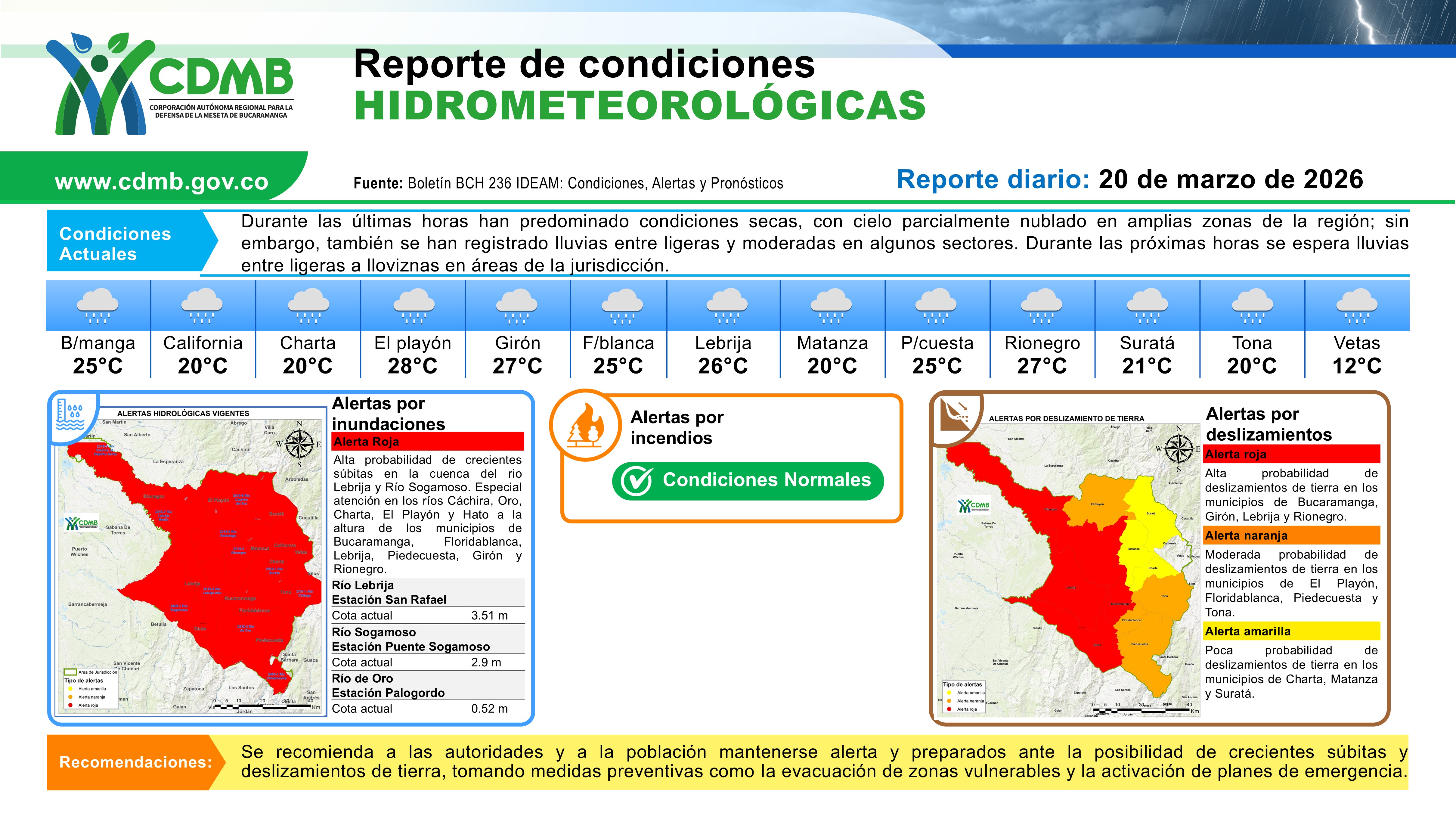 Reporte Alertas Hidrometereologicas 20 de marzo 2026