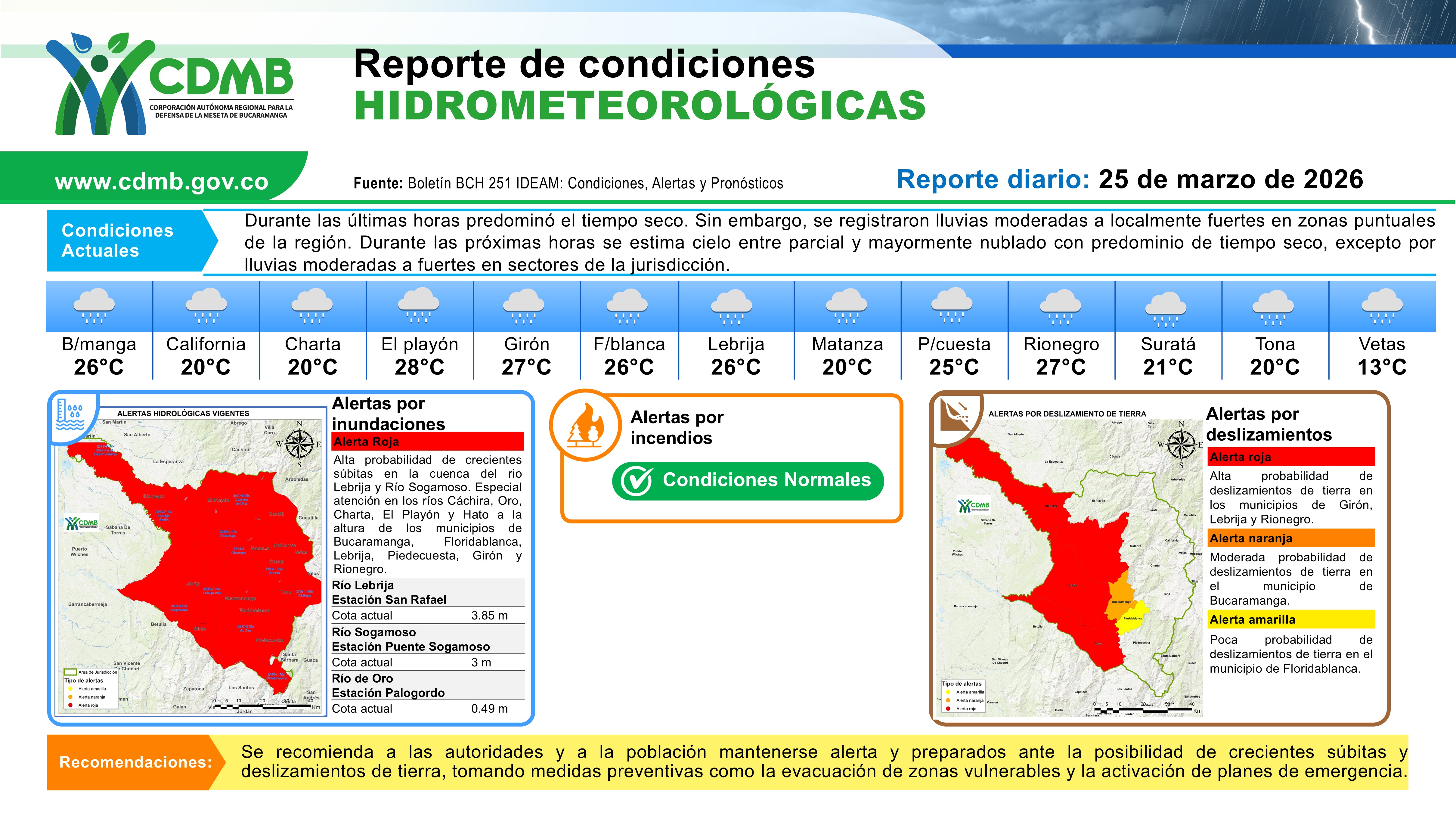 Reporte Alertas Hidrometereologicas 25 de marzo 2026