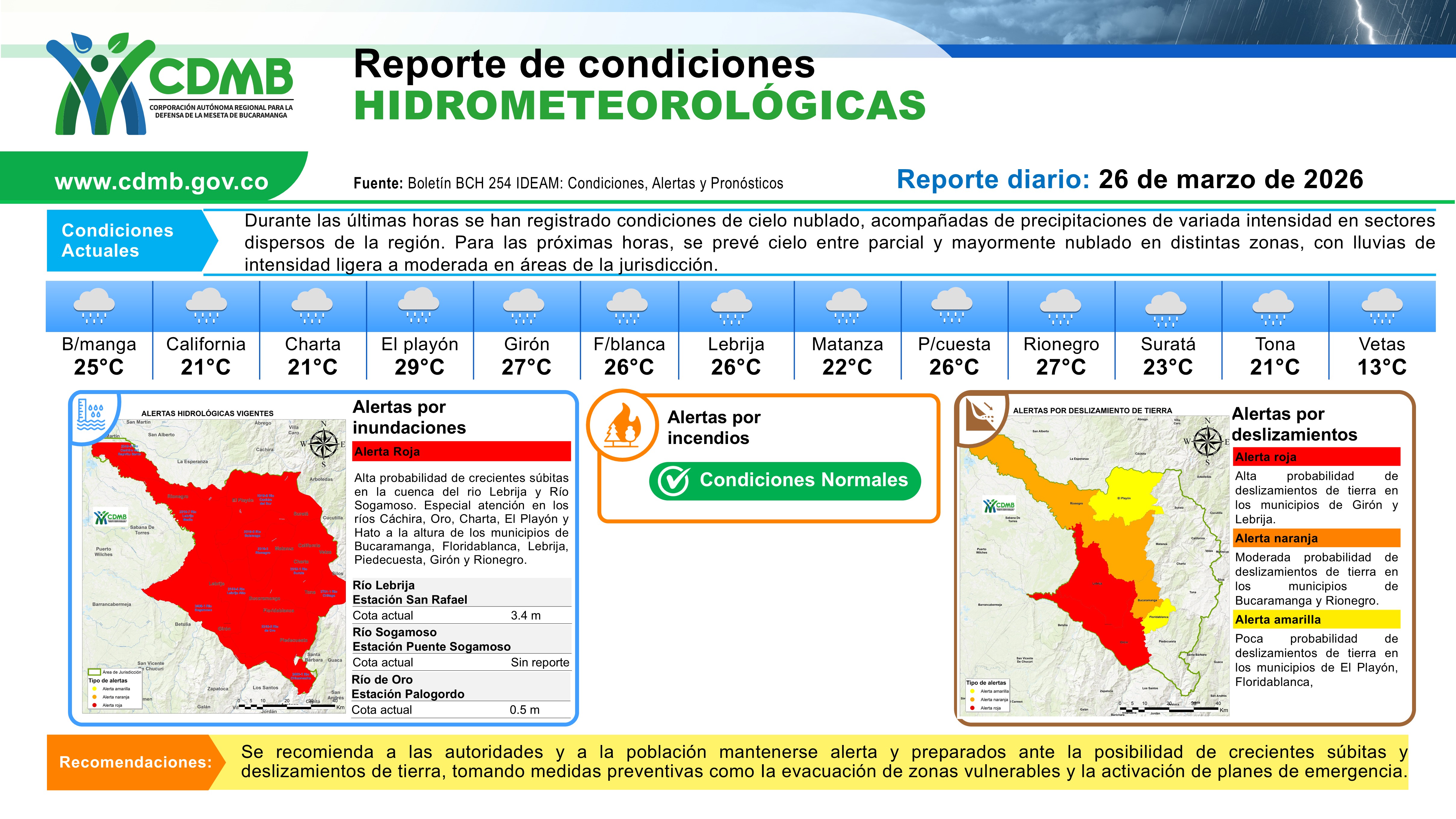 Reporte Alertas Hidrometereologicas 26 de marzo 2026