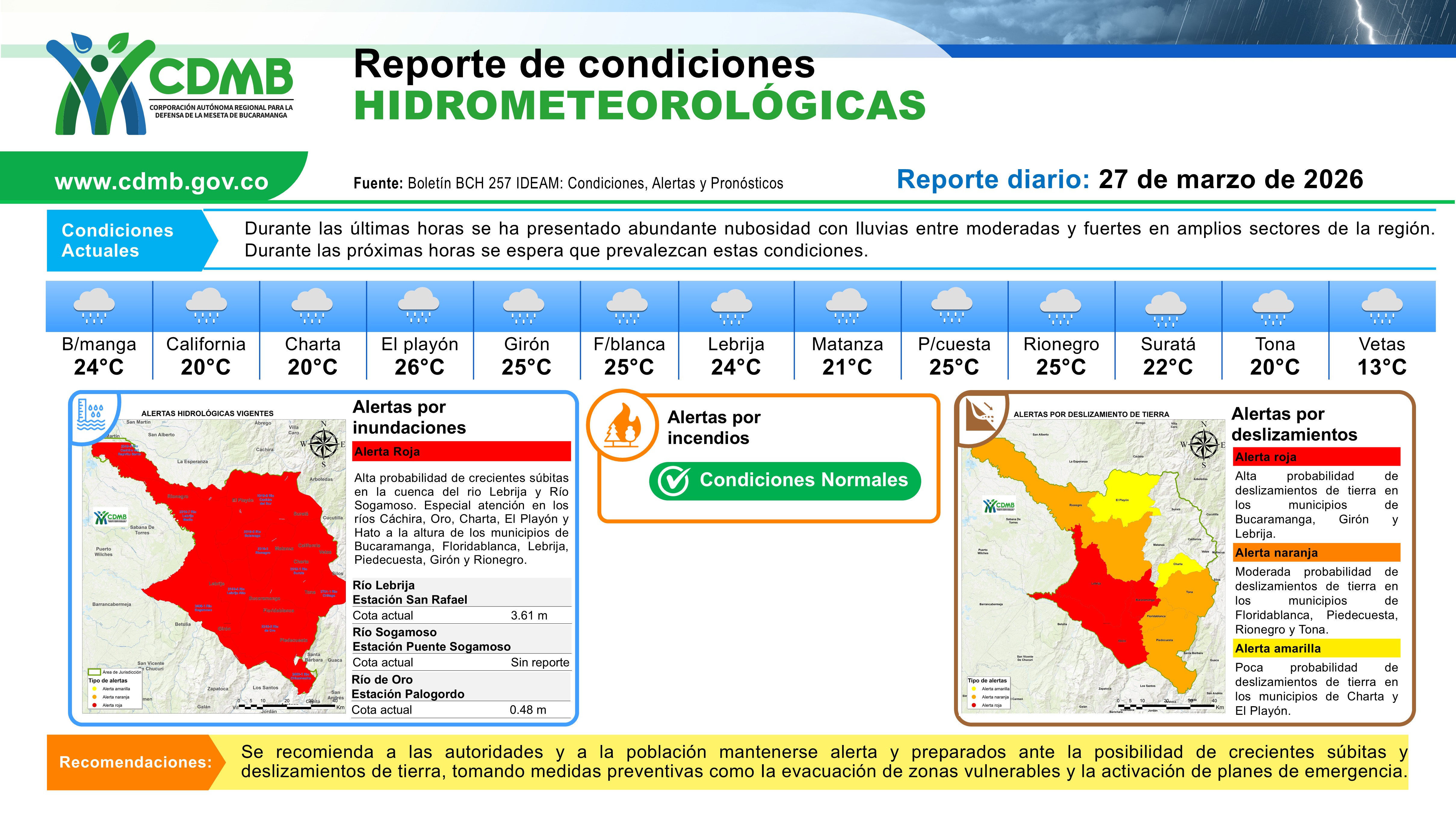 Reporte Alertas Hidrometereologicas 27 de marzo 2026