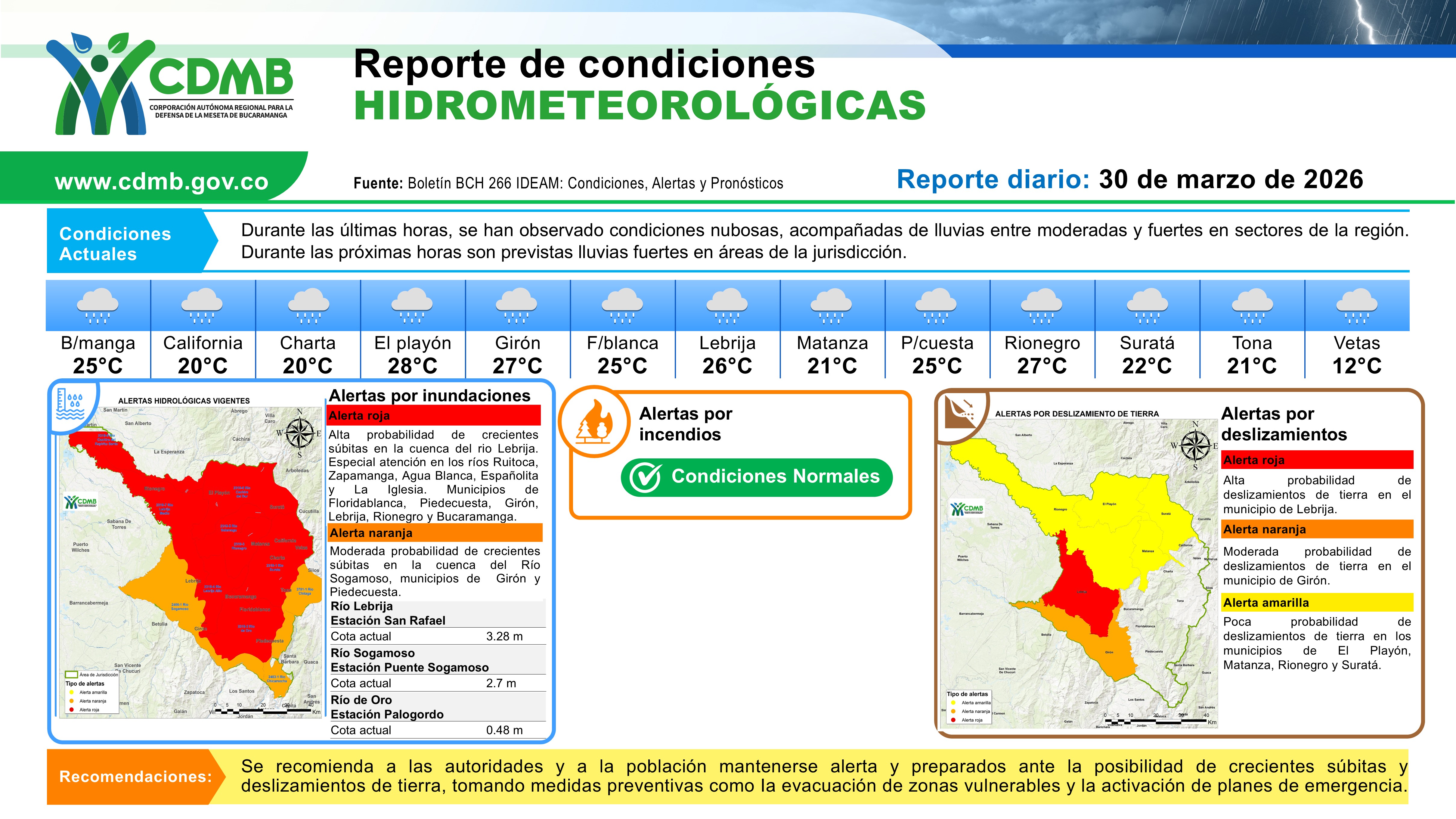 Reporte Alertas Hidrometereologicas 30 de marzo 2026