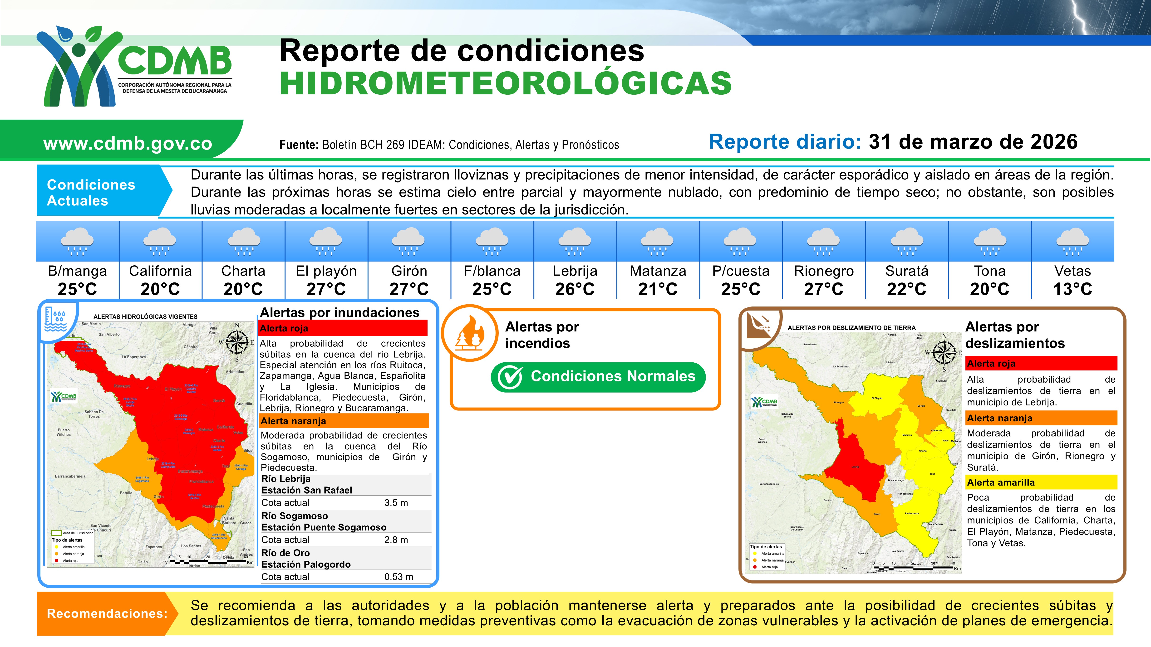 Reporte Alertas Hidrometereologicas 31 de marzo 2026