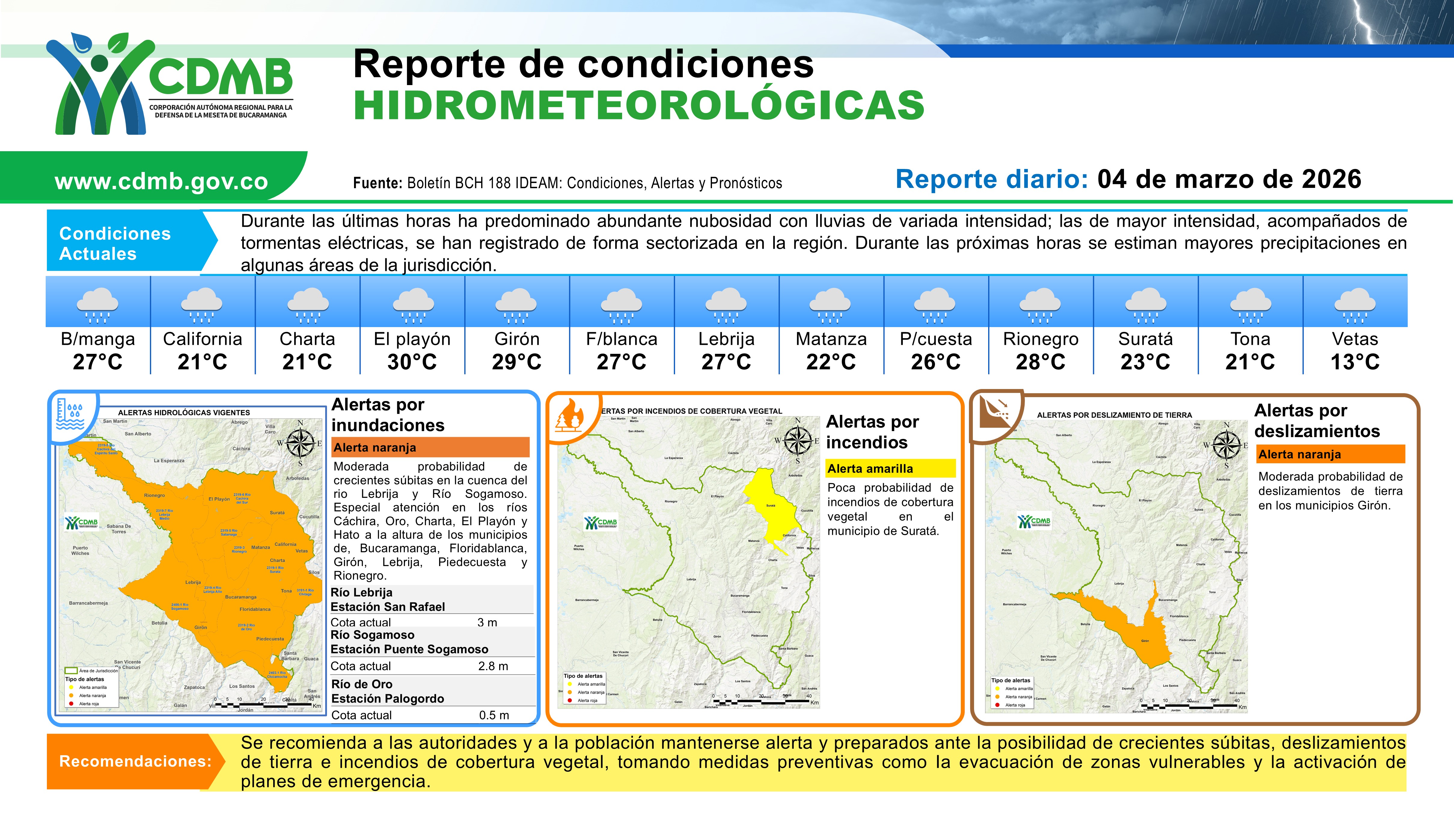 Reporte Alertas Hidrometereologicas 04 de marzo 2026