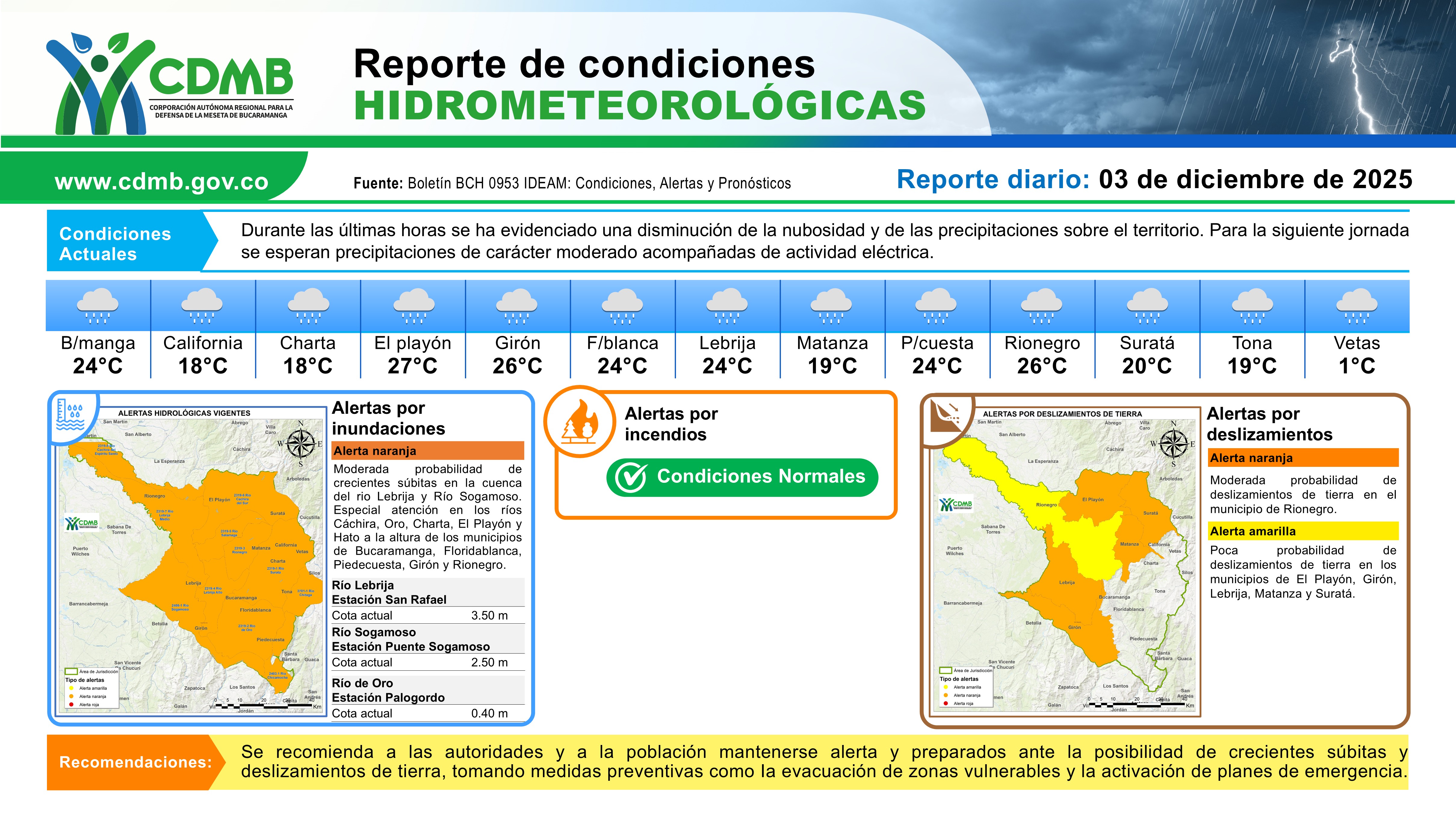 Reporte Alertas Hidrometeorológicas 03 de diciembre