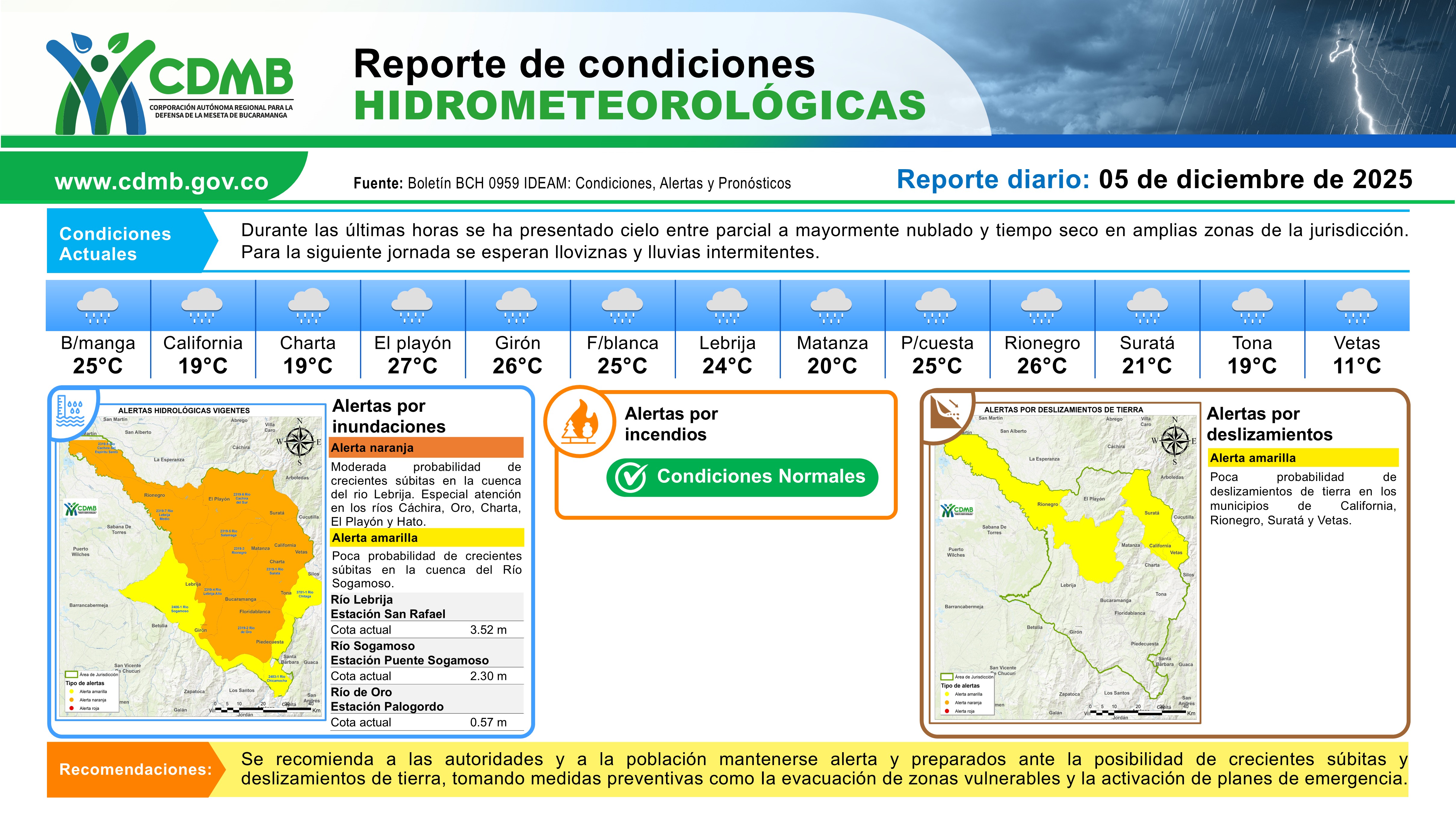 Reporte Alertas Hidrometereologicas 25 de diciembre