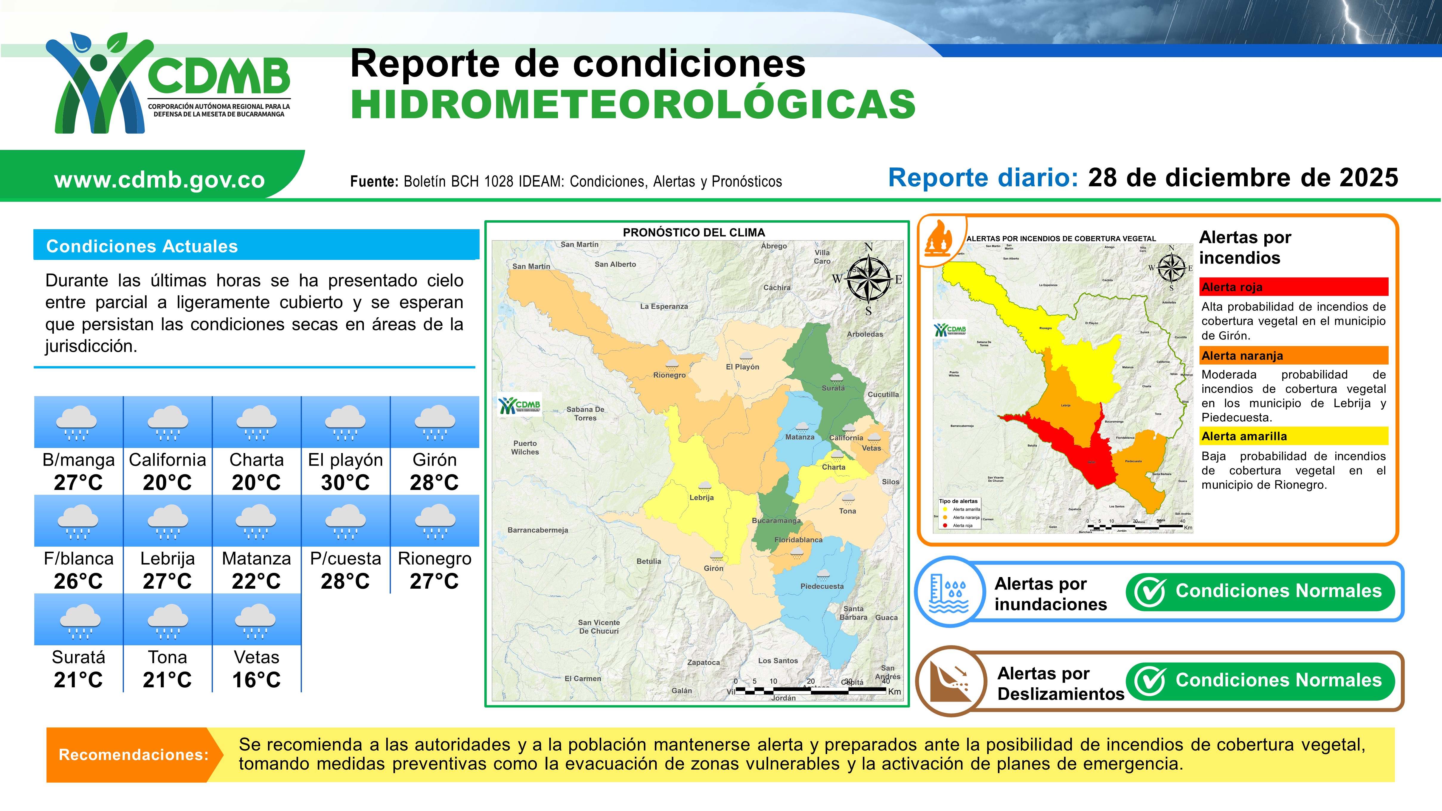 Reporte Alertas Hidrometereologicas 28 de diciembre