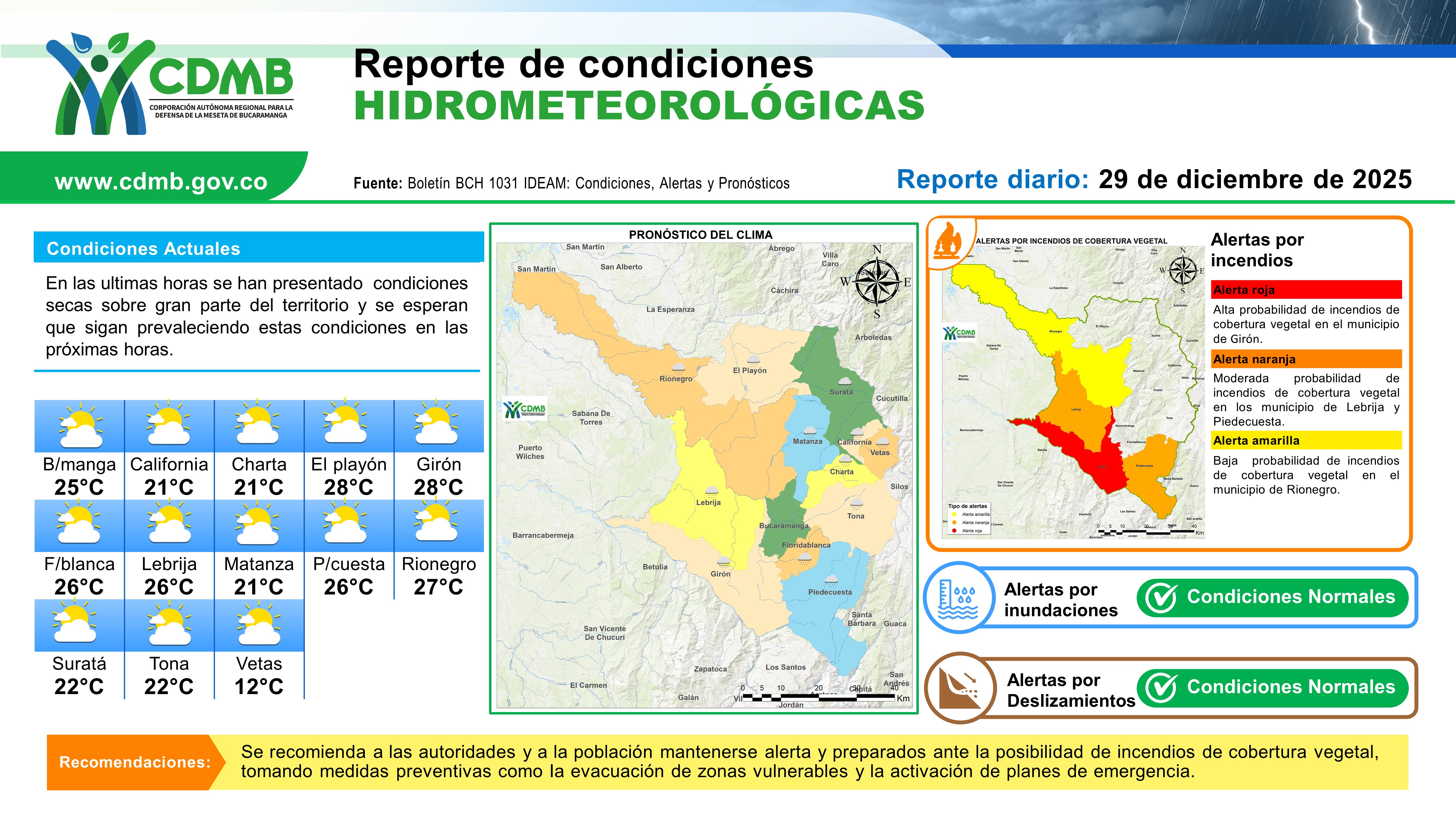 Reporte Alertas Hidrometereologicas 29 de diciembre