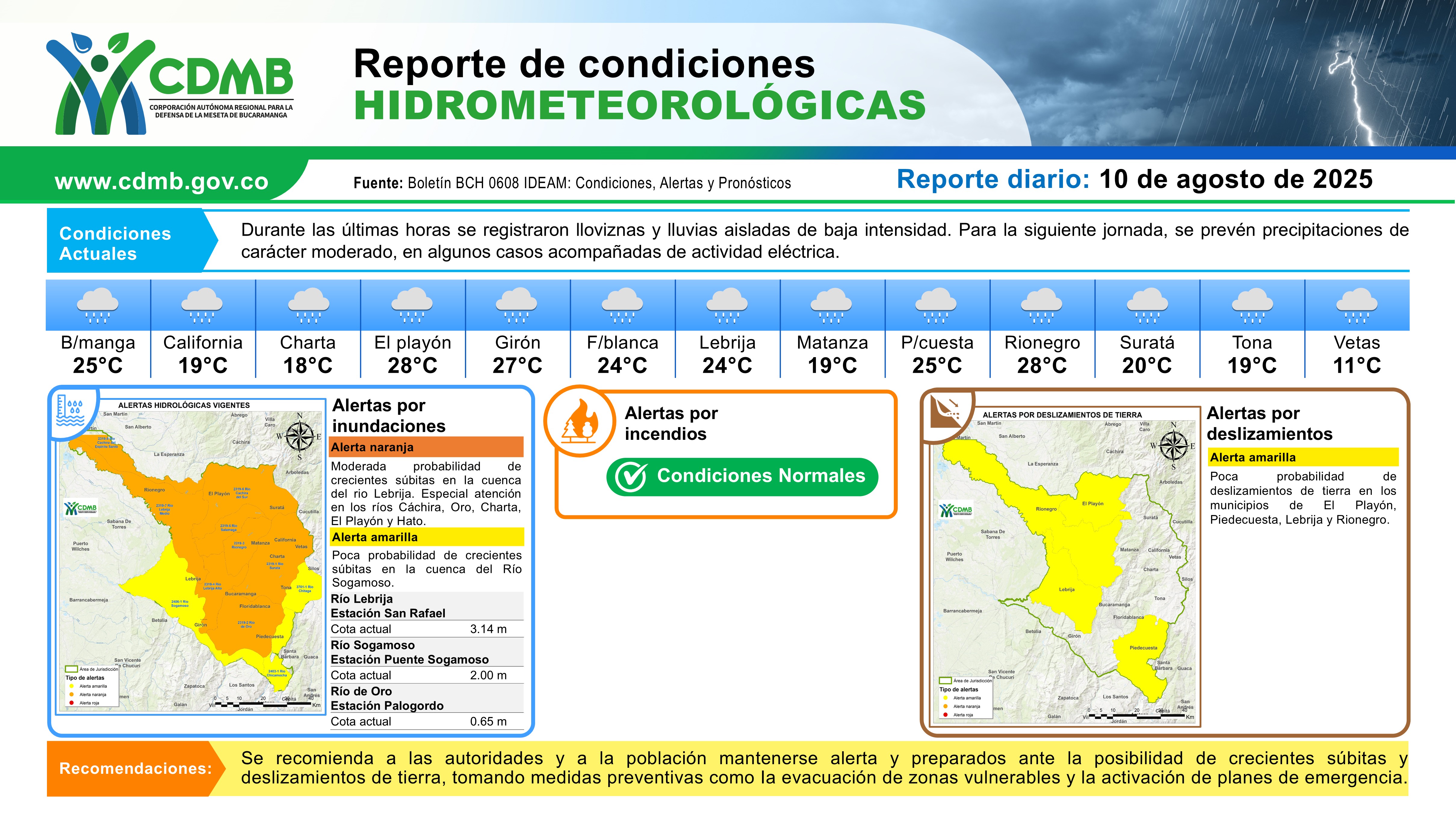 Reporte Alertas Hidrometeorológicas 10 de agosto