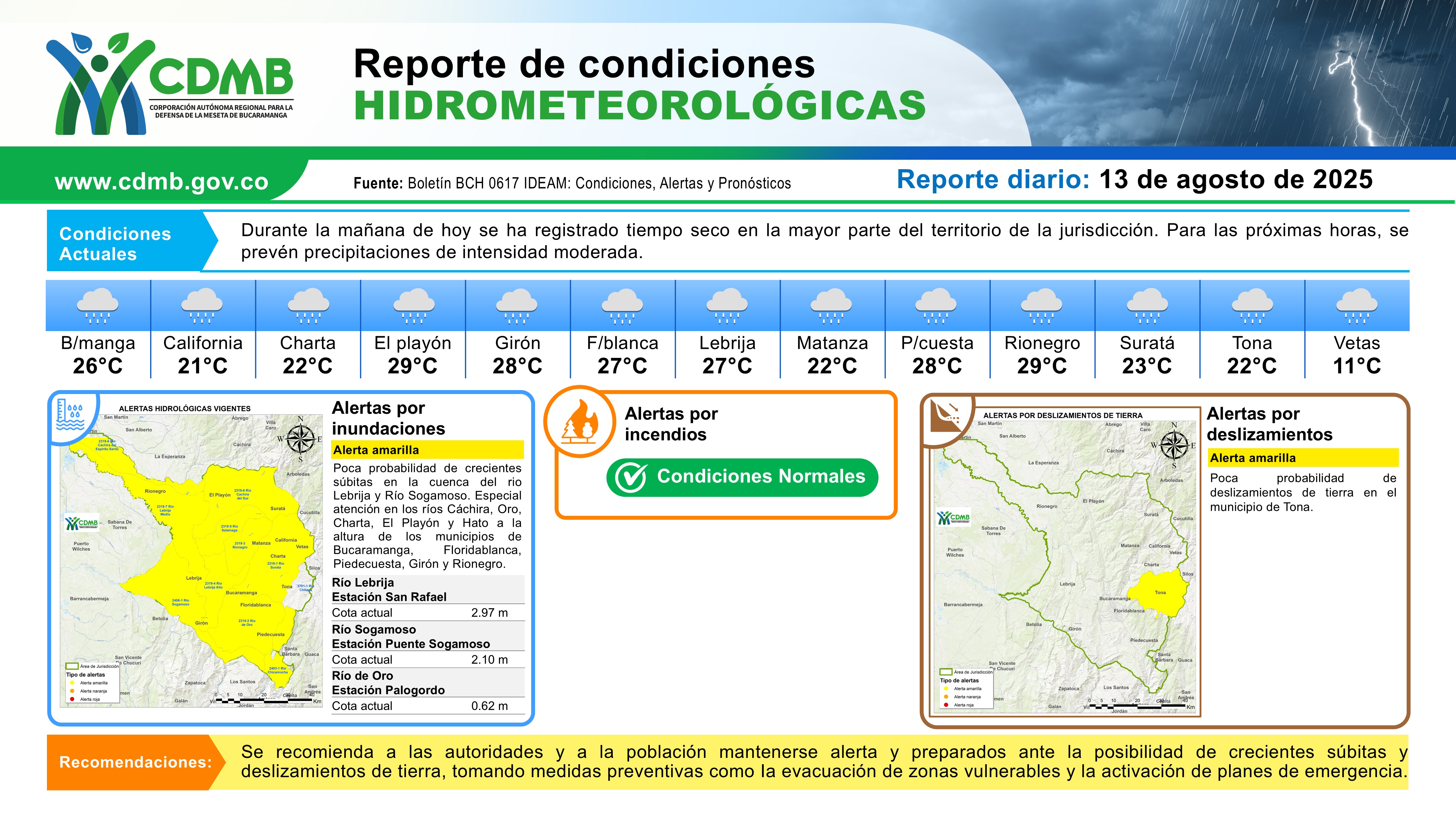 Reporte Alertas Hidrometeorológicas 13 de agosto
