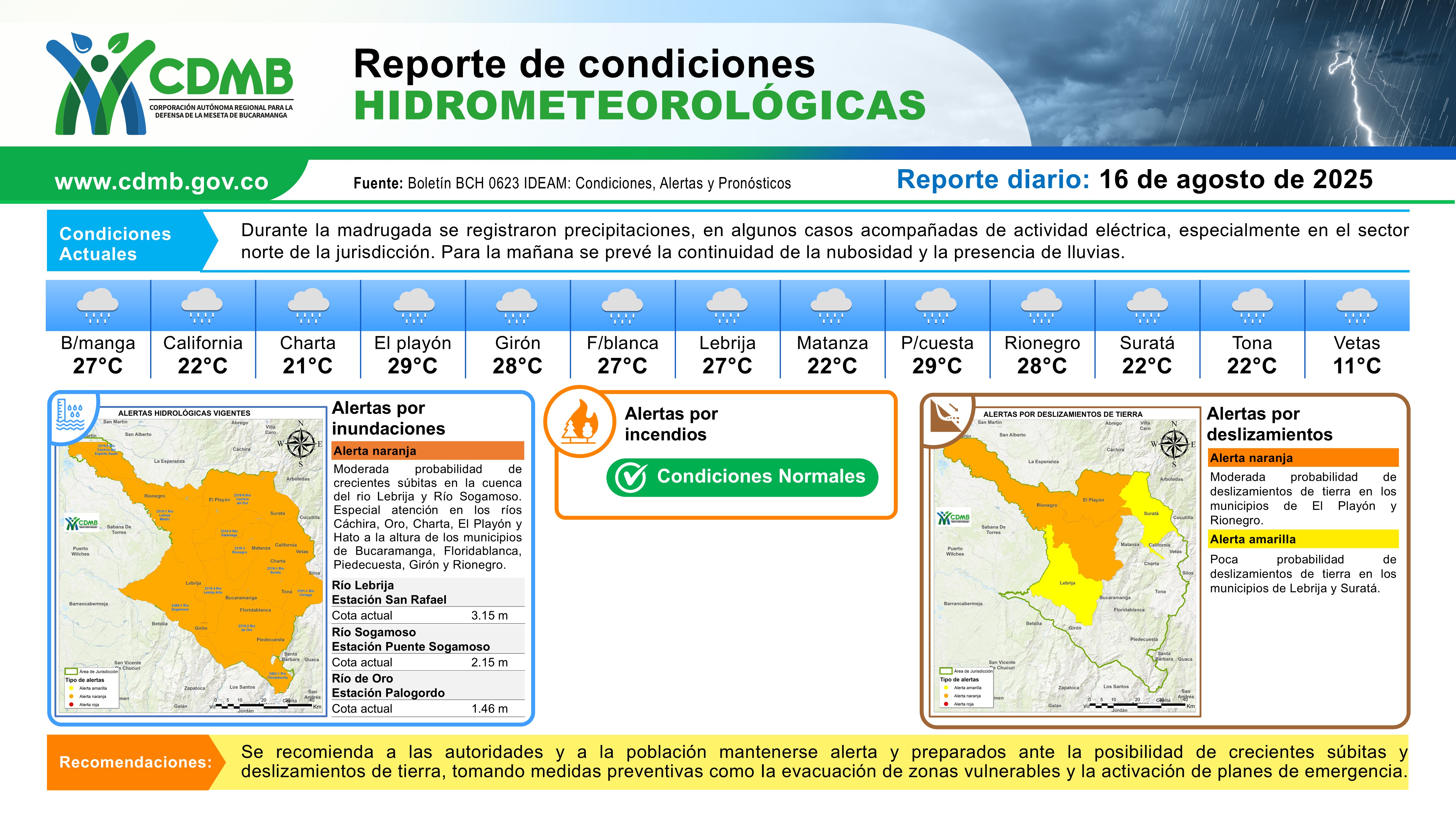 Reporte Alertas Hidrometeorológicas 16 de agosto