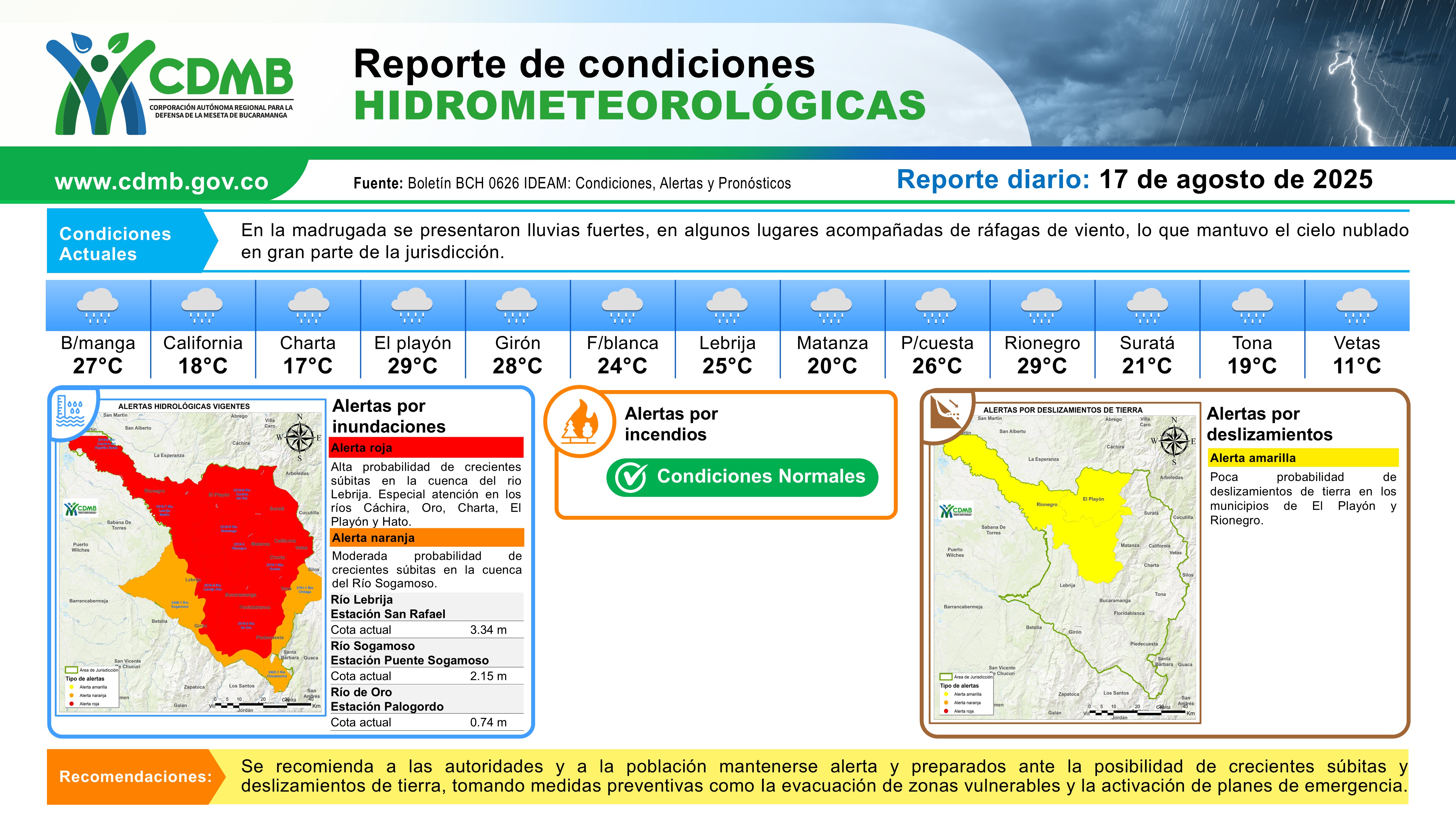 Reporte Alertas Hidrometeorológicas 17 de agosto