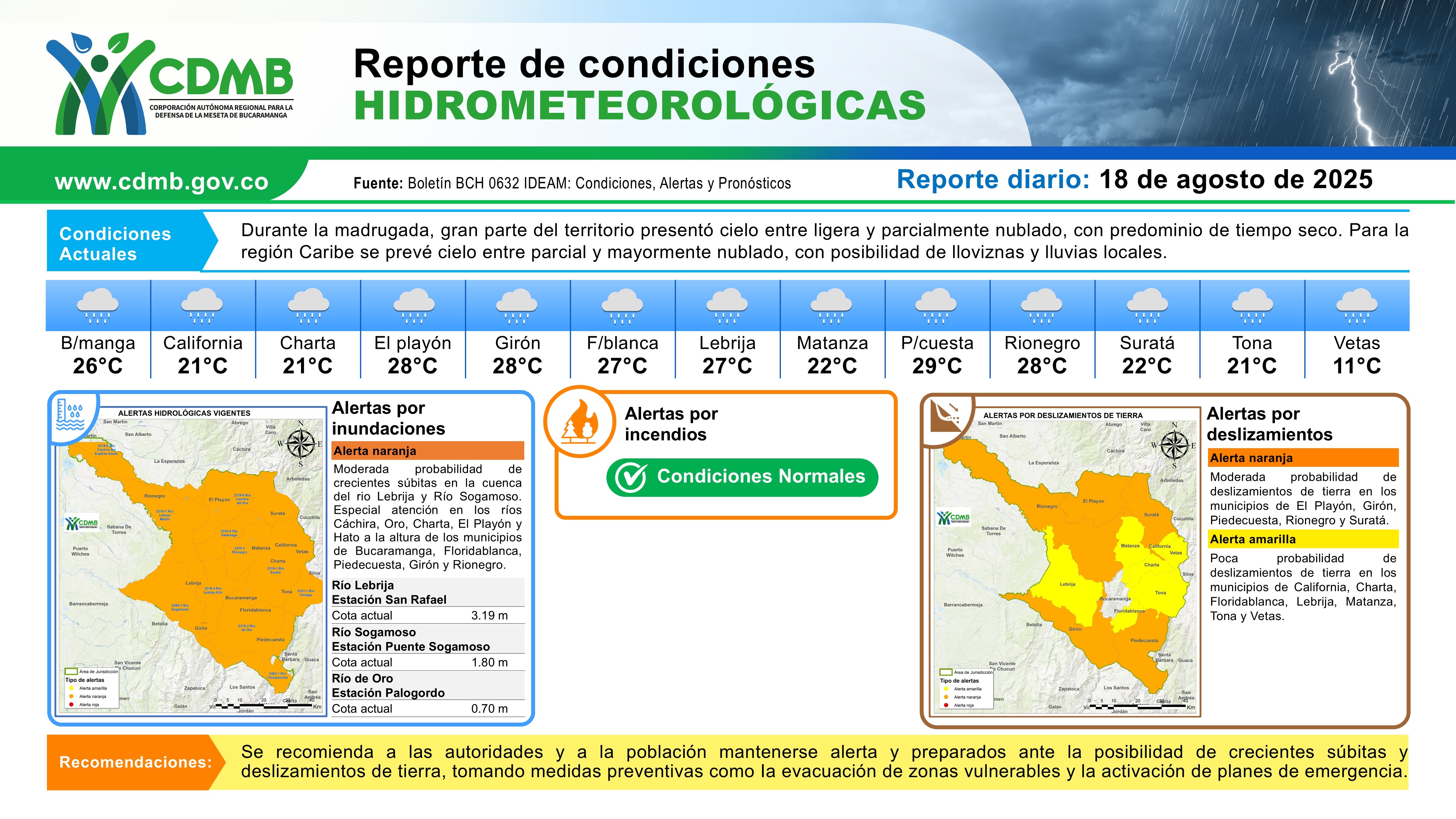 Reporte Alertas Hidrometeorológicas 18 de agosto