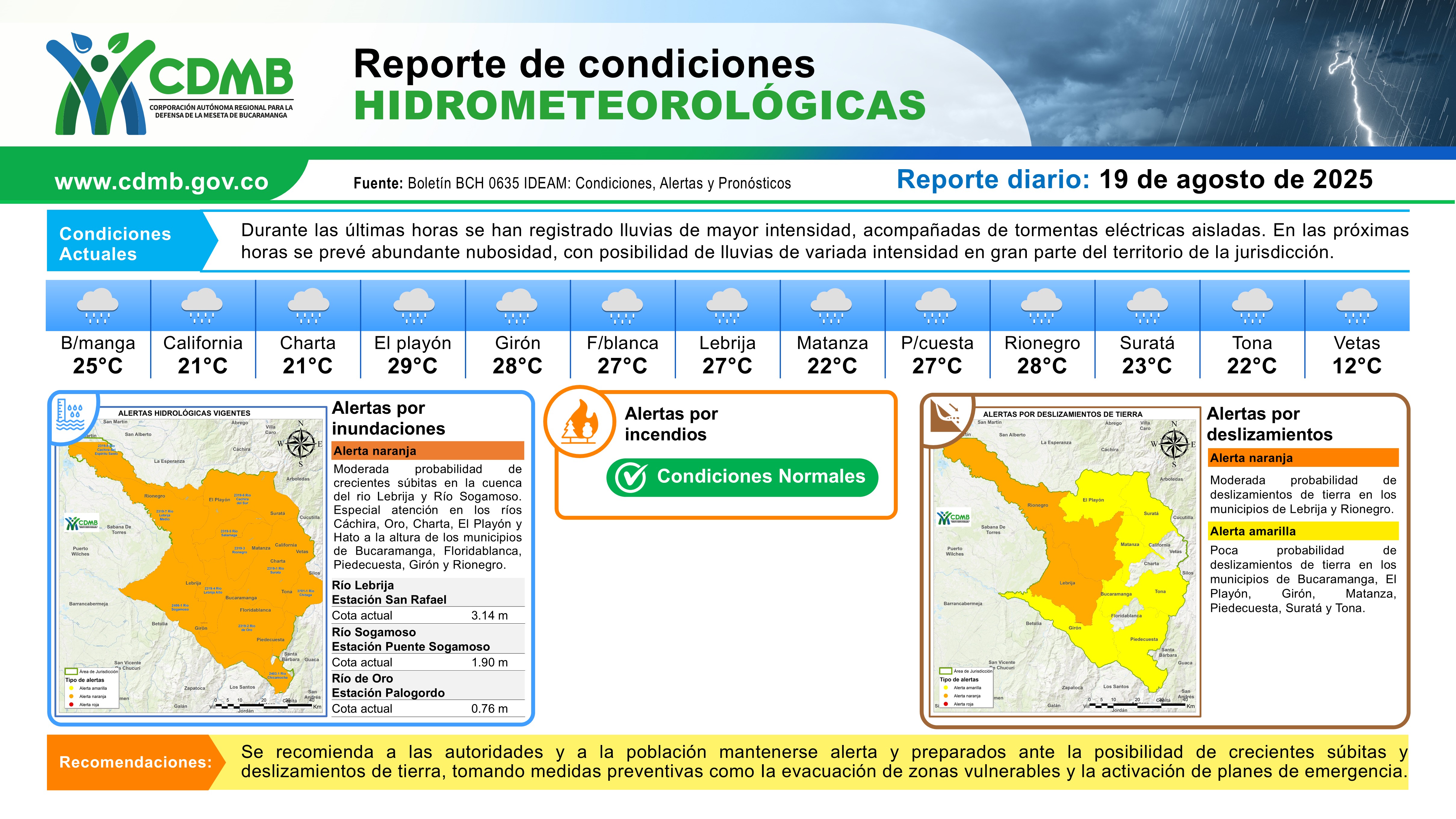 Reporte Alertas Hidrometeorológicas 25 de agosto