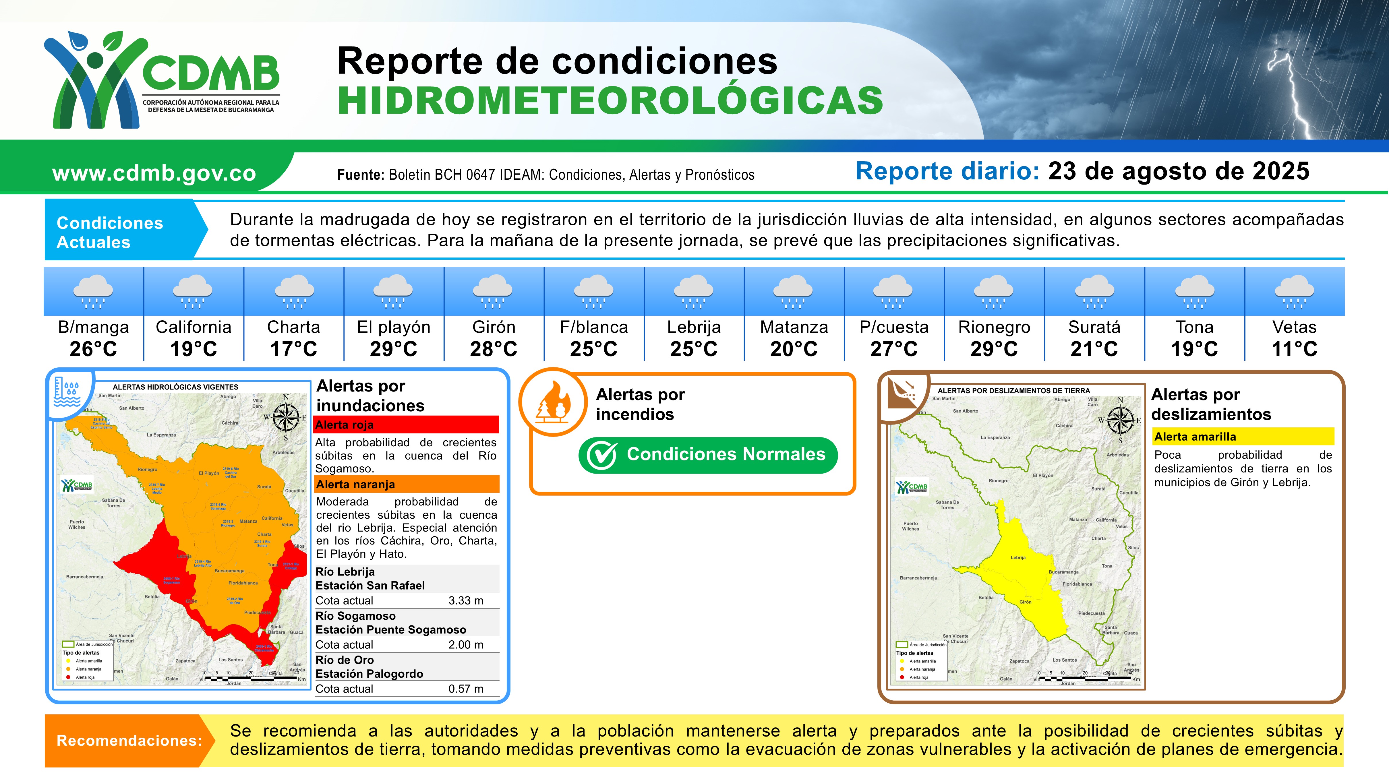 Reporte Alertas Hidrometeorológicas 23 de agosto