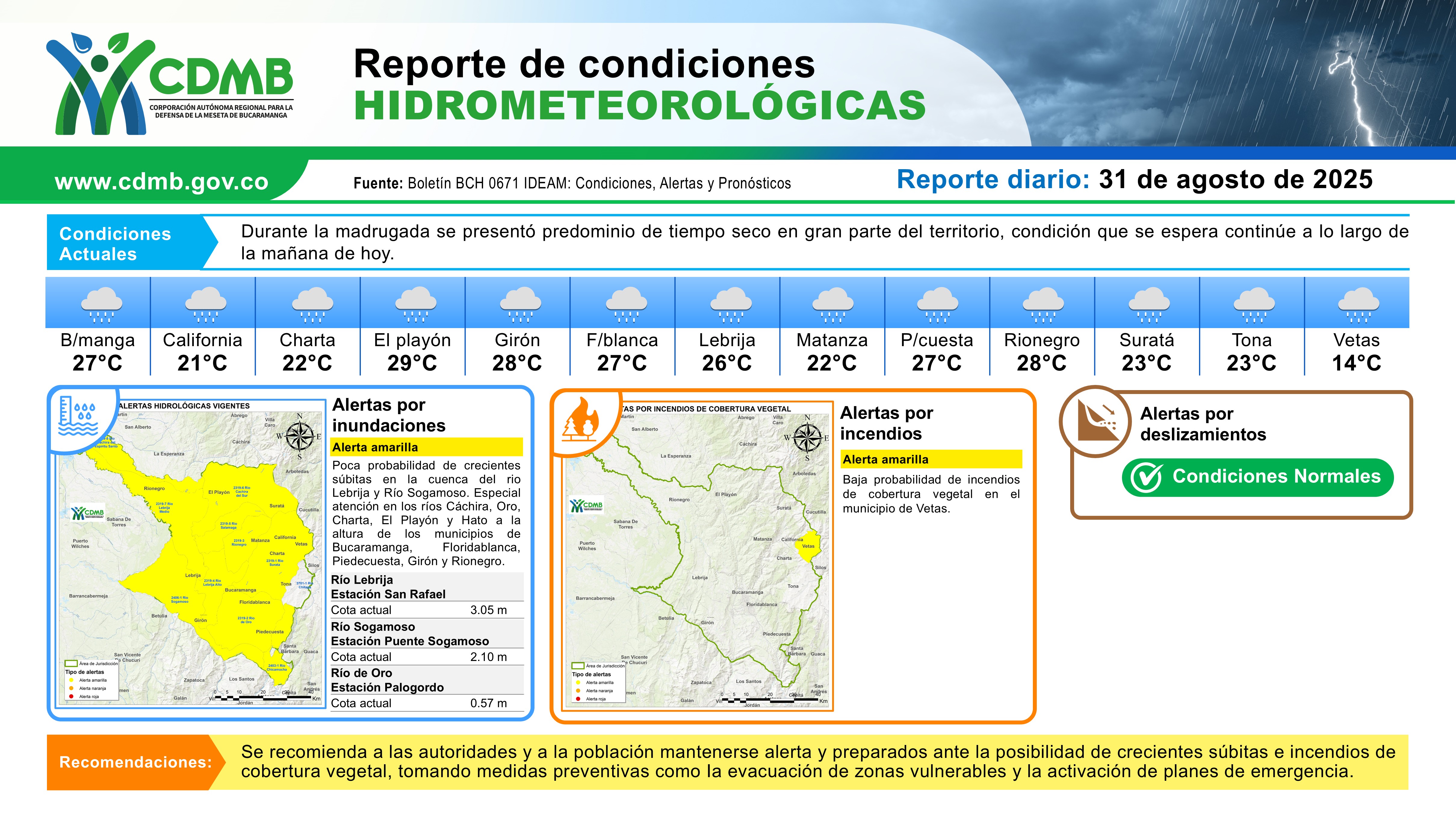 Reporte Alertas Hidrometeorológicas 31 de agosto