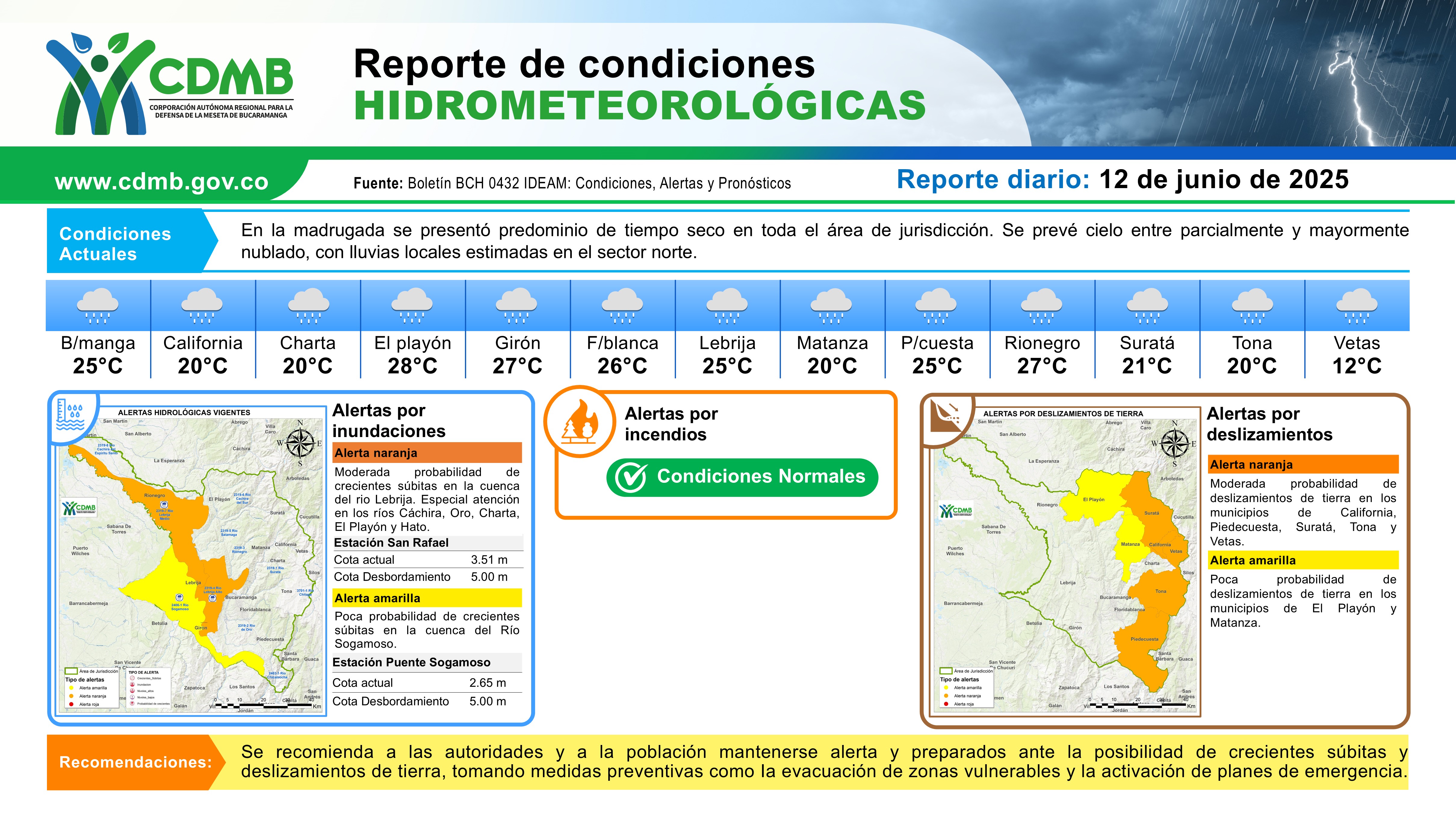 Reporte Alertas Hidrometeorológicas 12 de junio