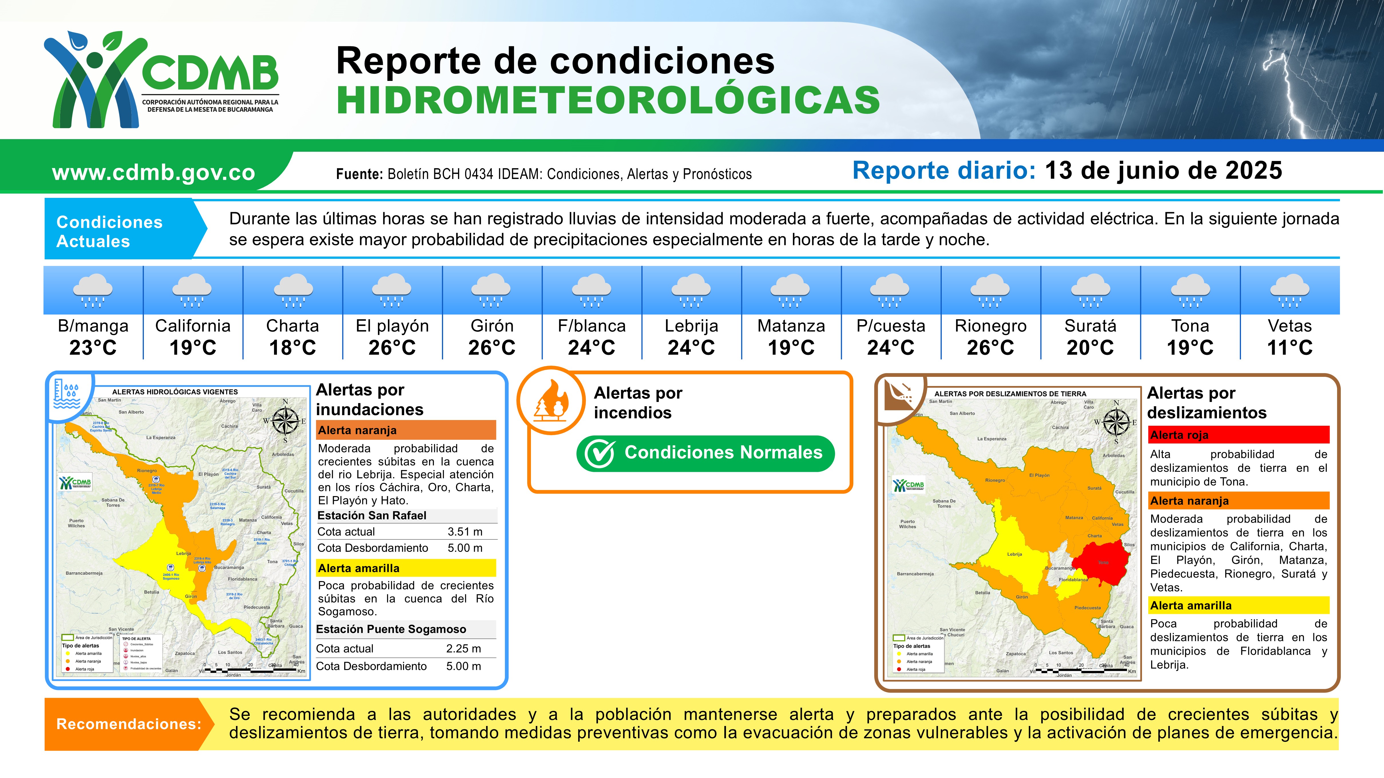 Reporte Alertas Hidrometeorológicas 13 de junio
