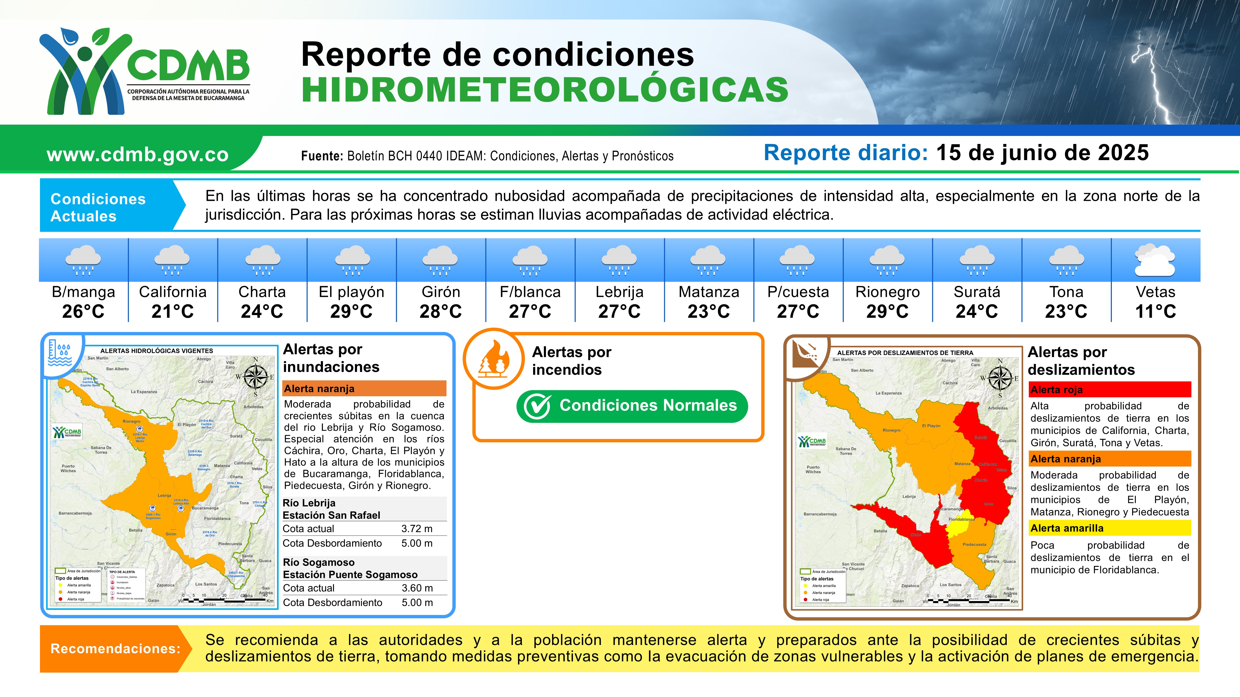 Reporte Alertas Hidrometeorológicas 15 de junio