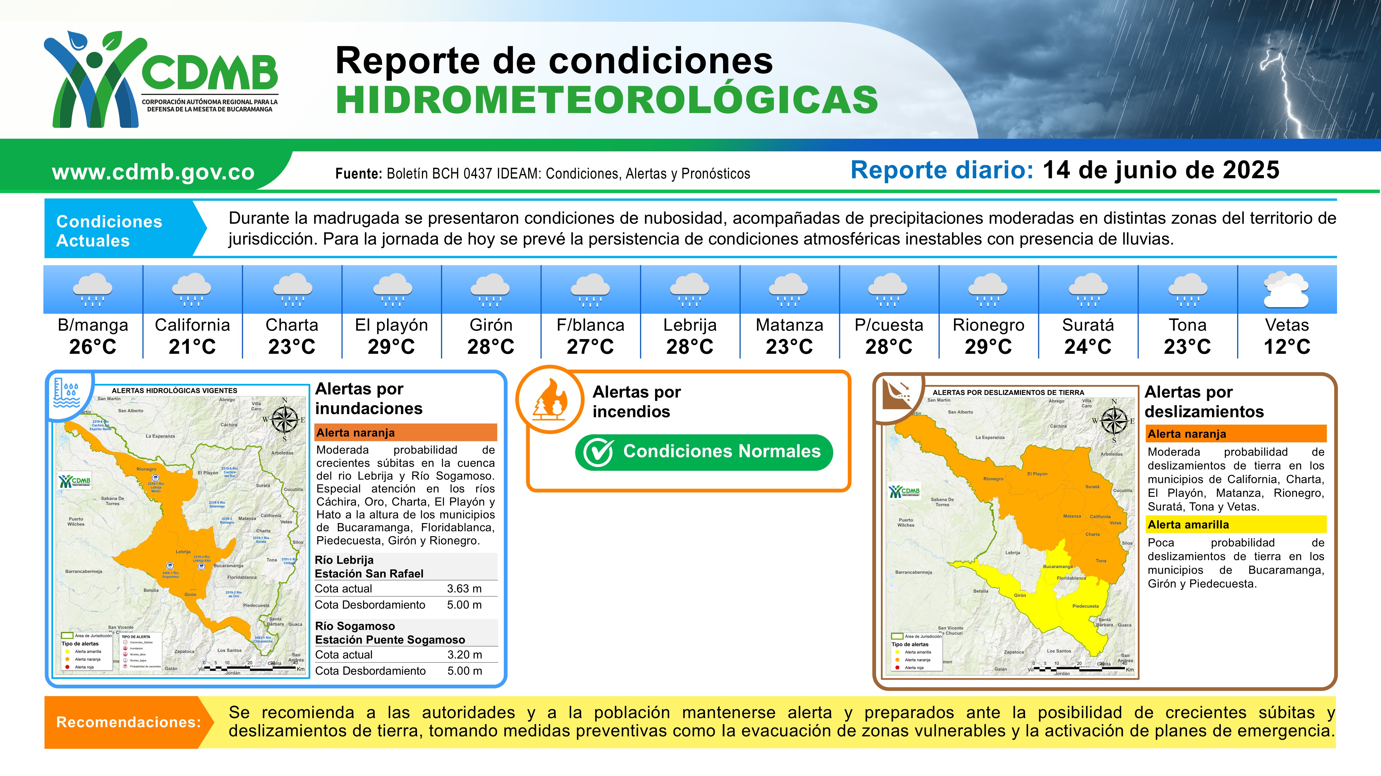Reporte Alertas Hidrometeorológicas 14 de junio