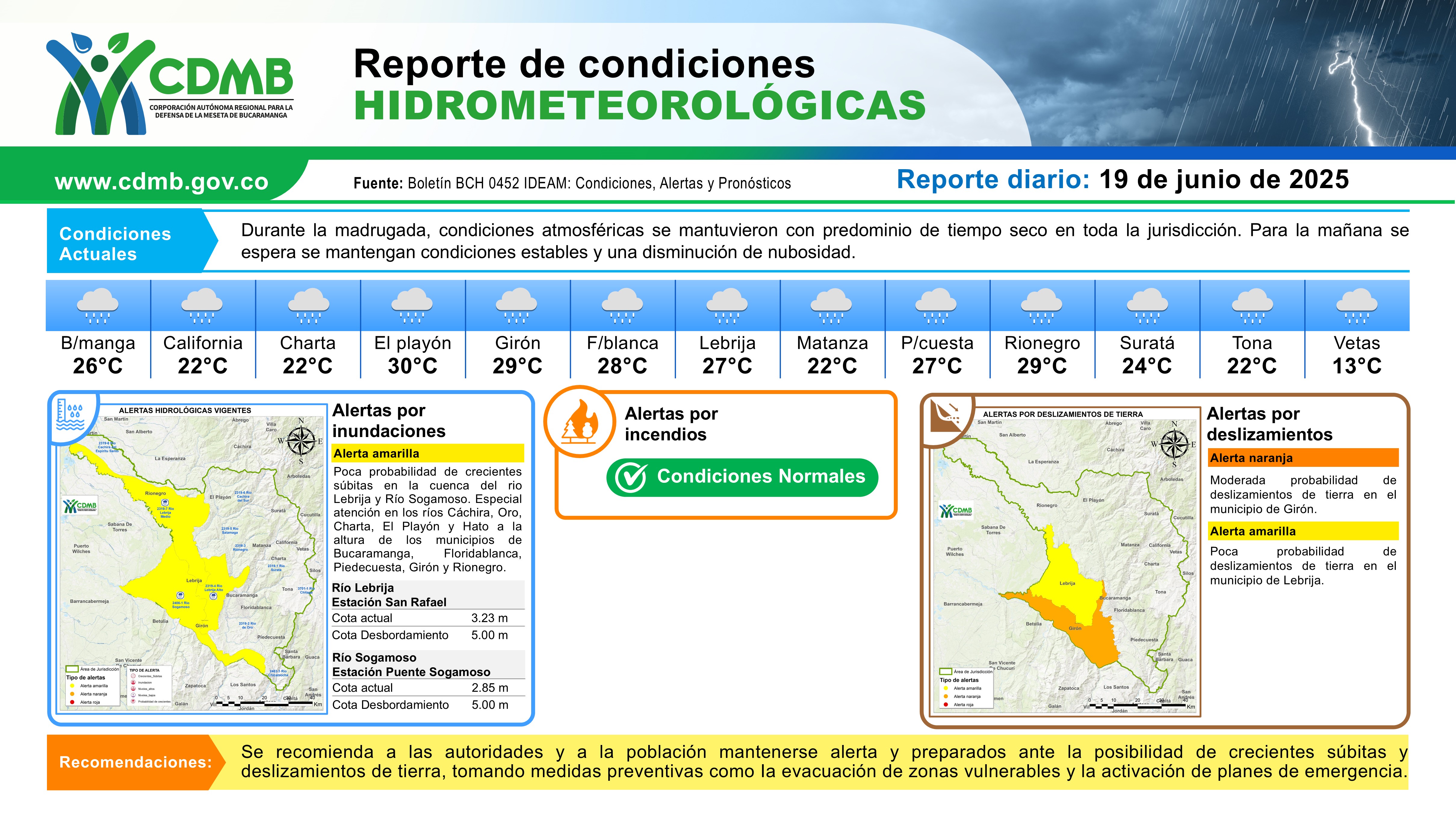 Reporte Alertas Hidrometeorológicas 19 de junio