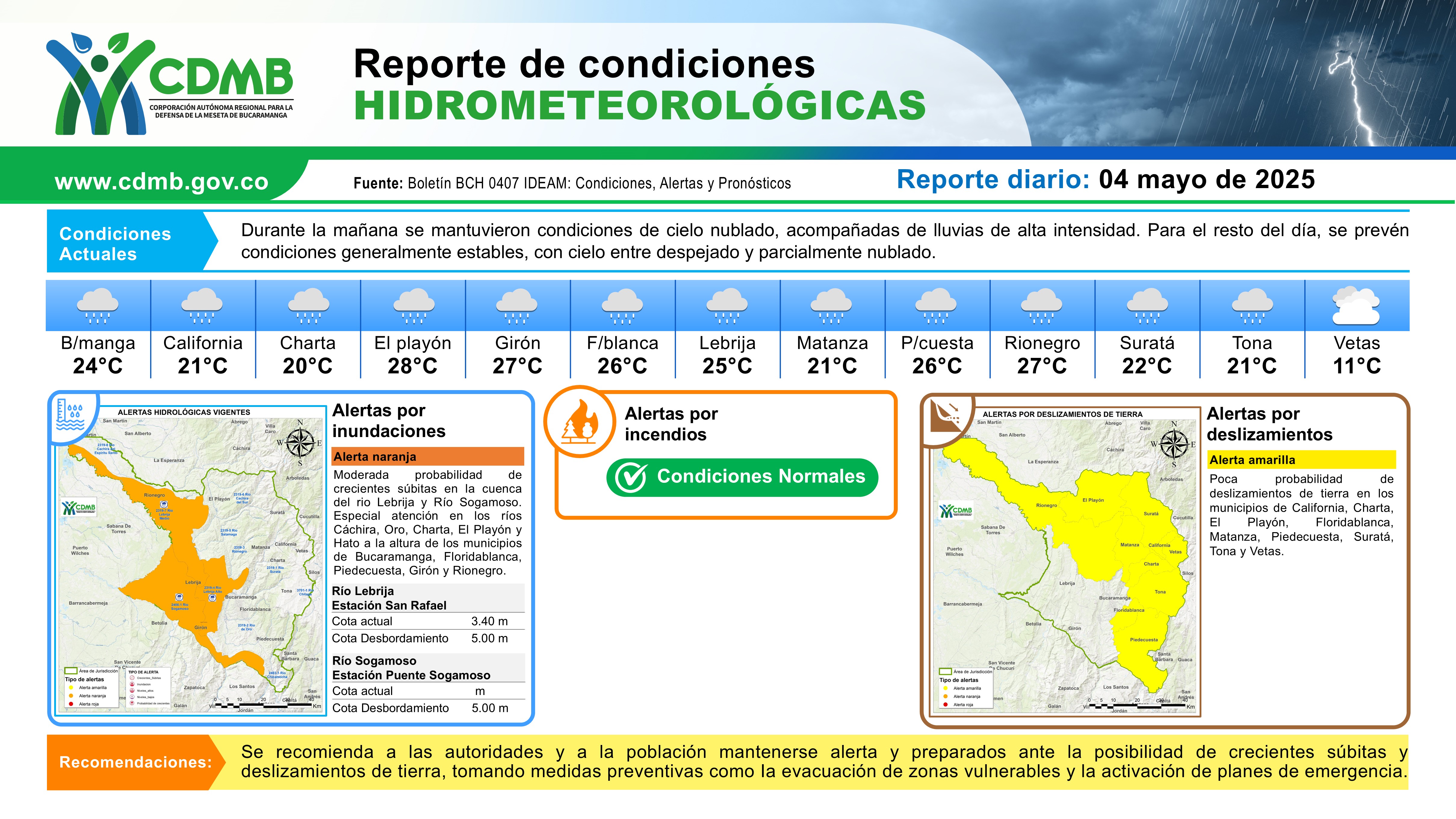Reporte Alertas Hidrometeorológicas 04 de junio